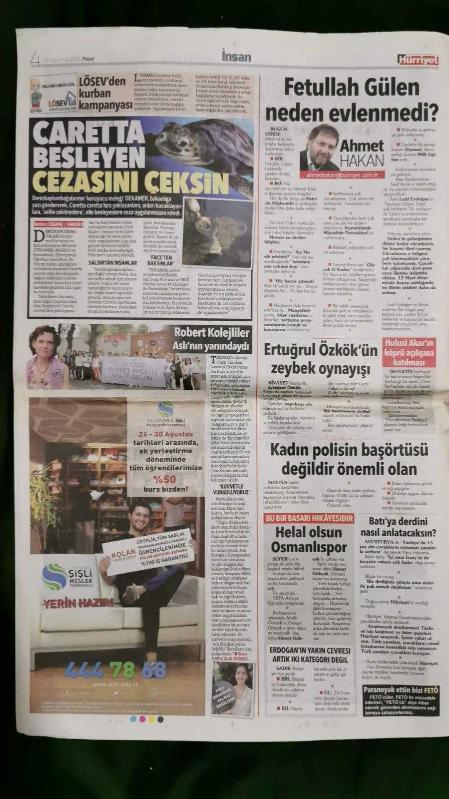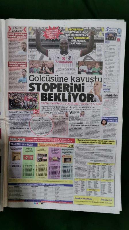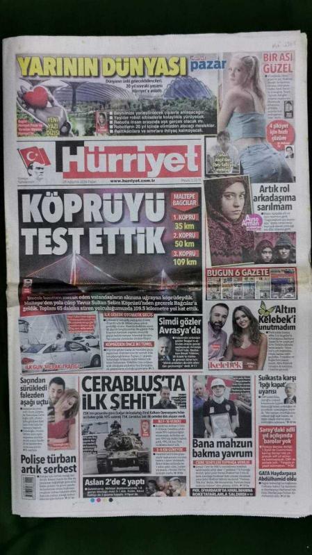 Kitap 2016 yılında yayınlanmıştır. 36 sayfadır. Hürriyet Gazete 28 Ağustos 2016 Köprüyü Test Ettik,Serel Yereli,Sinan Akçıl,Binali Yıldırım,Wesley Sneijder,Yasin Öztekin,Levent Nazifoğlu,Sinan Gümüş,Bruma,Arda Turan,Vincent Aboubakar,Dick Advocaat,Veli Ağbaba,Berkay Şahin,Özlem Katipoğlu,Sıla,Caner Erkin,Şükran Ovalı,Altan Nuh,Tuğba Özerk,John Kerry,Sergey Lavrov,Mevlüt Çavuşoğlu,Nikos Kocias,Jessica Alba,Barbaros Tapan,Taziye İlanı,Seri İlanlar,Samsung Galaxy Note 7 Reklam Afişi adlı eser Türkçe dilindedir.