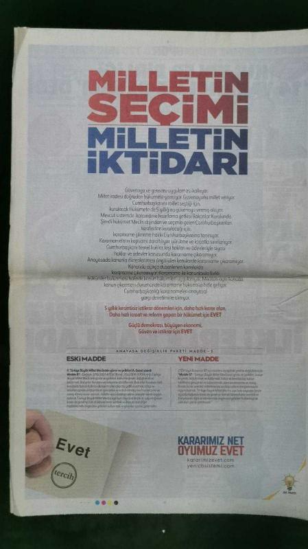 Kitap 2017 yılında yayınlanmıştır. 36 sayfadır. Hürriyet Gazete 28 Mart 2017 Aziz Yıldırım,Okay Yokuşlu,Doçent Dr. Bilge Demirköz,Gülper Özdemir,Recep Tayyip Erdoğan,Binali Yıldırım,Kemal Kılıçdaroğlu,Çendrim Ramadani 10 Müebbetin Gerekçesi,Emre Mor,Fatih Terim,Cağlar Söyüncü,Emre Çolak,Göksel Gümüşdağ,Ahmet Çalık,Dursun Özbek,Ferdi Kadıoğlu,Angela Merkel,Salih Müslim,Ivanka Trump,Sinan Oğan,Mevlüt Çavuşoğlu,Ertuğrul Özkök,Aytaç Öztuna,Ayda Aksel,Yağmur Aşık,Pelin Karahan,Yekta Kopan,Sertab Erener,Şener Şen,Aynur Aydın,Ruhsar Özal,Seri İlanlar,Ricardo Quaresma,Milletin Seçimi Milletin İktidarı Ak Parti Afişi,Kaya Palazzo - Garanti Reklamı adlı eser Türkçe dilindedir.