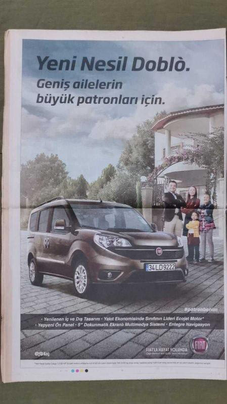 Kitap 2015 yılında yayınlanmıştır. 36 sayfadır. Hürriyet Gazete 3 Şubat 2015 Felipe Melo,Roberta Melo,Katy Perry,Aleksis Çipras,El Sisi,Barack Obama,Haşim Kılıç,Demba Ba,Tolga Zengin,Aziz Yıldırım,Gonca Yıldırım,Wesley Sneijder,Aytaç Kara,Carl Medjani,Kevin Constant,Hakan Fidan,Bülent Arınç,Meryem Uzerli,Müzeyyen Senar,Belçim Bilgin,John Malkovich,Melisa Sezen,Mert Fırat,Orhan Pamuk,Seri İlanlar,Çağlar Çorumlu Fiat - Zaman Gazete - ETS Tur - Jolly Reklamı adlı eser Türkçe dilindedir.