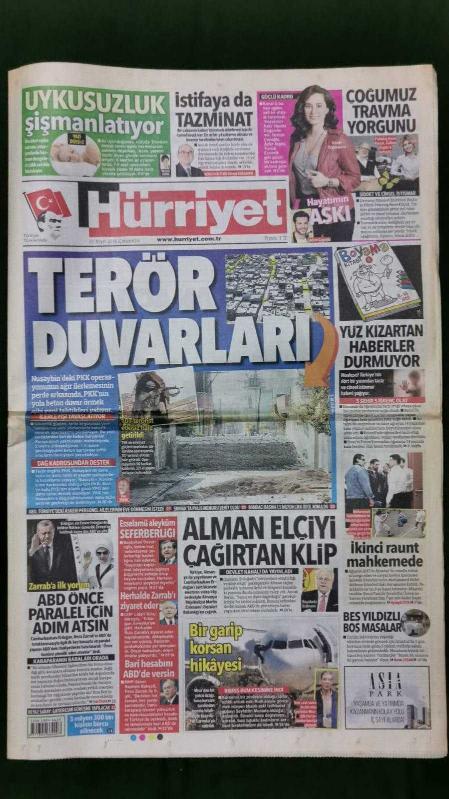 Kitap 2016 yılında yayınlanmıştır. 42 sayfadır. Hürriyet Gazete 30 Mart 2016 Terör Duvarları,Hande Doğandemir,Gülben Ergen,Emre Konuk,Serkan Çayoğlu,Recep Tayyip Erdoğan,Emine Erdoğan,Hakan Çalhanoğlu,Fatih Terim,Galatasaray Voleybol Takımı,Gökhan Gönül,Aaron Gordon,Oya Başar,Caner Erkin,Asena Atalay,Sevcan Zabit,Cengiz Erberk,Oğulcan Kırca,Tülin Şahin,Kraliçe Elizabeth,Profç.Aziz Sancar,Mike Tyson,Ferhan Şensoy,Süleyman Soylu,Ali Rıza Mete Taziye İlanları,Seri İlanlar,SeaPearl Reklamı adlı eser Türkçe dilindedir.