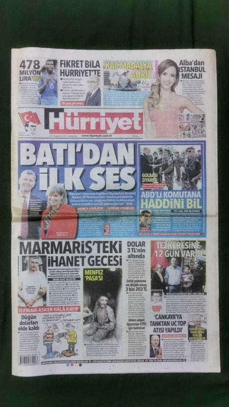 Kitap 2016 yılında yayınlanmıştır. 32 sayfadır. Hürriyet Gazete 30 Temmuz 2016 Jessica Alba,Paul Pogba,Recep Tayyip Erdoğan,Richard Moore,Tuğgeneral Gökhan Şahin Sönmezateş,Numan Kurtulmuş,"Paşa" Lakaplı Zekeriya Kuzu,Binali Yıldırım,Agua Bendita,Samuel Eto,Şenol Güneş,Taha Akgül,Rıza Kayaalp,Servet Tazegül,Adriano,Selim Yaşar,Viktoria Zeynep Güneş,Birsel Vardarlı Demirmen,Işıl Alben,Volkan Demirel,Jan Olde Riekerink,Hakan Balta,Wesley Sneijder,Selçuk İnan,Bruma,Sinan Gümüş,Ricky Martin,Meryem Uzerli,Alp Özcan,Cansel Elçin,Deniz Seki,Timur Acar,Şevket Çoruh,Murat Akkoyunlu,Didem Balçin,İlker Ayrık,Beren Saat,Kadir Topbaş,Fikri Işık,Mevlüt Çavuşoğlu,Joseph Dunford,Efkan Ala,Taner Yıldız,Hulusi Akar,Celalettin Lekesiz,James Clapper,Joseph Votel,İsmail Metin Temel,Seda Bakan Akbank Reklamı adlı eser Türkçe dilindedir.