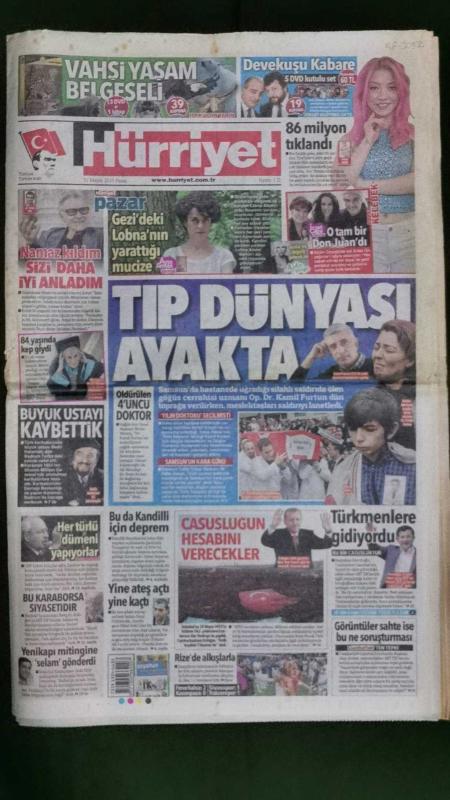 Kitap 2015 yılında yayınlanmıştır. 38 sayfadır. Hürriyet Gazete 31 Mayıs 2015 Tıp Dünyası Ayakta,Ece Seçkin,Erdal Özyağcılar,Güzin Yağcılar,Harvey Keitel,Recep Tayyip Erdoğan,Kemal Kılıçdaroğlu,Bedri Koraman Vefat Etti,Ahmet Davutoğlu,Alkışlarla ŞAMPİYON,Sabri Sarıoğlu,Emre Çolak,Lukas Podolski,Aydın Yılmaz,Sinan Bolat,Bugün Günlerden GALATASARAY Ülker Reklamı,Bengü,Slaven Bilic,Fikret Orman,Tomas Sivok,Hamza Hamzaoğlu,Tomas Sivok,Aziz Yıldırım,Ali Koç,Emre Belözoğlu,Fırat Aydınus,Hulusi Belgü,Başak Demirtaş,"Papa'yı Değil Peygamberimizi Örnek Göster" Kemal Kılıçdaroğlu,Hadise,Merve Boluğur,Kıvanç Tatlıtuğ,Bergüzar Korel,Hatice Şendil,Burak Sağyaşar,Altan Öymen,Cem Yılmaz,Seri İlanlar,CHP - MHP - İŞ GYO - Dumankaya - HP Reklamı adlı eser Türkçe dilindedir.