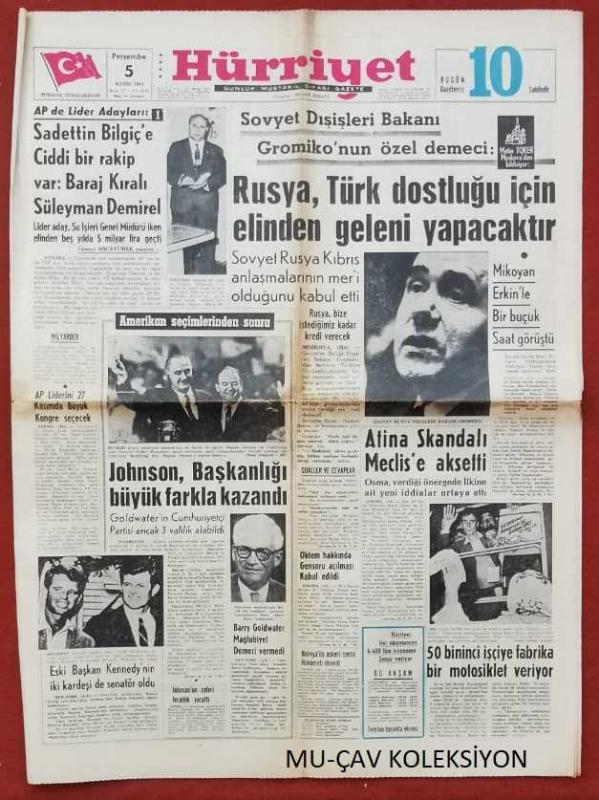 Kitap 1964 yılında yayınlanmıştır. 10 sayfadır. Hürriyet Gazete 5 Kasım 1964 Rusya,Türk Dostluğu İçin Elinden Geleni Yapacaktır,Süleyman Demirel,Grimiko,Robert-Edward Kennedy,Bülent Ecevit,Can Bartu,Gündüz Kılıç,Çoşkun Özarı,BP-Tekfen-Tad-Job Reklamı adlı eser Türkçe dilindedir.