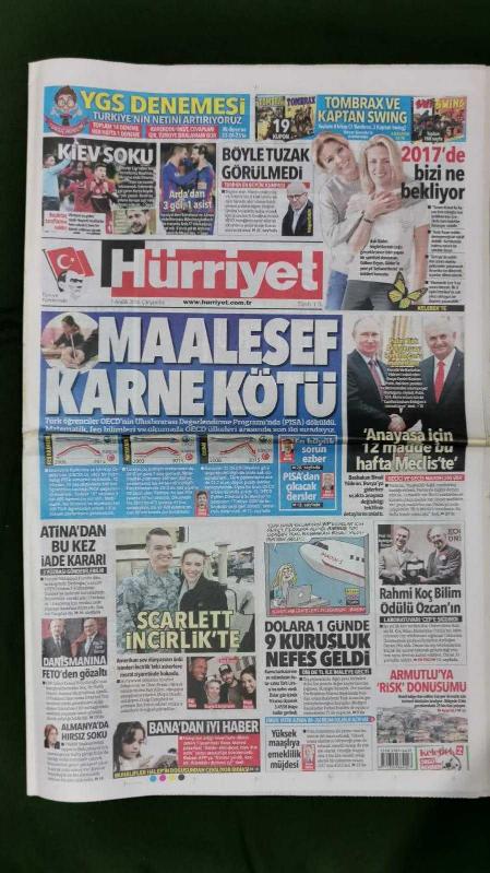 Kitap 2016 yılında yayınlanmıştır. 36 sayfadır. Hürriyet Gazete 7 Aralık 2016 Maalesef Karne Kötü,Gülben Ergen,Aslı Güder,Lionel Messi,Arda Turan,Oğuzhan Özyakup,Vladimir Putin,Binali Yıldırım,Scarlett Johansson,MAya Dirado,Ray Allen,Chris Evans,Kemal Kılıçdaroğlu,Rahmi Koç,Gigi Hadid,Meghan Markle,Prens Harry,Dinamo Kiev 6-0 Beşiktaş,Andreas Beck,Şenol Güneş,Aziz Yıldırım,Ozan Balaban,Zeljko Obradovic,Maurizio Gherardini,Ebru Yaşar,Bülent Ersoy,Emel Sayın,Erhan Çelik,Gülben Ergen,James Taylor,Joe Walsh,Al Pacino,Mavis Staples,Michelle Obama,Barack Obama,Ömer Koç,Martha Argerich,Seri İlanlar,Renault - Skyland İstanbul Reklamı adlı eser Türkçe dilindedir.