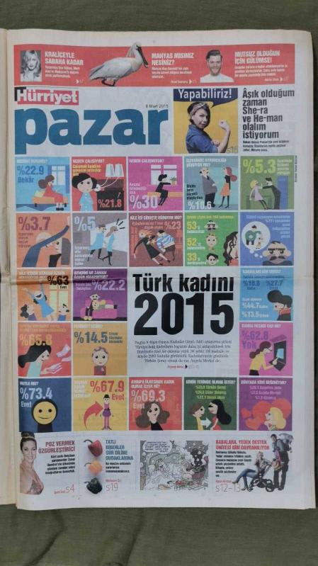 Kitap 2015 yılında yayınlanmıştır. 20 sayfadır. Hürriyet Gazete 8 Mart 2015 TÜRK KADINI 2015,İbrahim Tatlıses,Alex De Souza,Yiğit Bulut,Vildan Atasever,Recep Tayyip Erdoğan,Ağlarsa Anam Ağlar Babam Da Bunlardan Kitap Yapar,Pucca,Metin Hara,Hugh Jackman Afiş,Tepe İnşaat - Edifice - İstikbal - Opel Reklamı adlı eser Türkçe dilindedir.