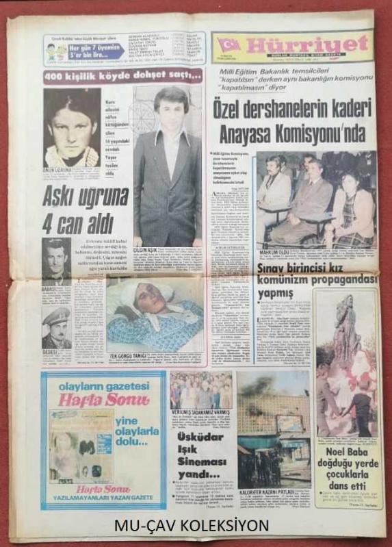 Kitap 1982 yılında yayınlanmıştır. 14 sayfadır. Hürriyet Gazete 9 Aralık 1982 Gazino Reklamları,Müslüm Gürses,Hülya Koçyiğit,Mehmet Emin Karamehmet,Morgan Fairchild,Yılmaz Tokatlı,Ayhan-Ali Taşkın,Bülent Ecevit,Kenan Evren,Bizimkiler Karikatürü,Kodak-Skoda Reklamı adlı eser Türkçe dilindedir.