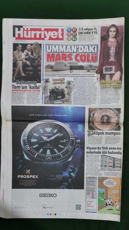 Kitap 2018 yılında yayınlanmıştır. 32 sayfadır. Hürriyet Gazete 9 Şubat 2018 Tarkan,Recep Tayyip Erdoğan,Vladimir Putin,Hasan Ruhani,Orhan Çiftçi,Iryna Dil,Tom Hardy,Serdar Aziz,Halil Umut Meler,Samuel Eto,Fatih Terim,Tijana Boskovic,Hüseyin Avni Mutlu,Hüseyin Çapkın,Metin Feyzioğlu,Ezgi Mola,Hakan Fidan,İrem Derici,Pınar Tevetoğlu,Mert Fırat,Hande Doğandemir,Nejat İşler,Demet Evgar,Naci Ağbal,Seri İlanlar,SEIKO - ING Bank Reklamı adlı eser Türkçe dilindedir.