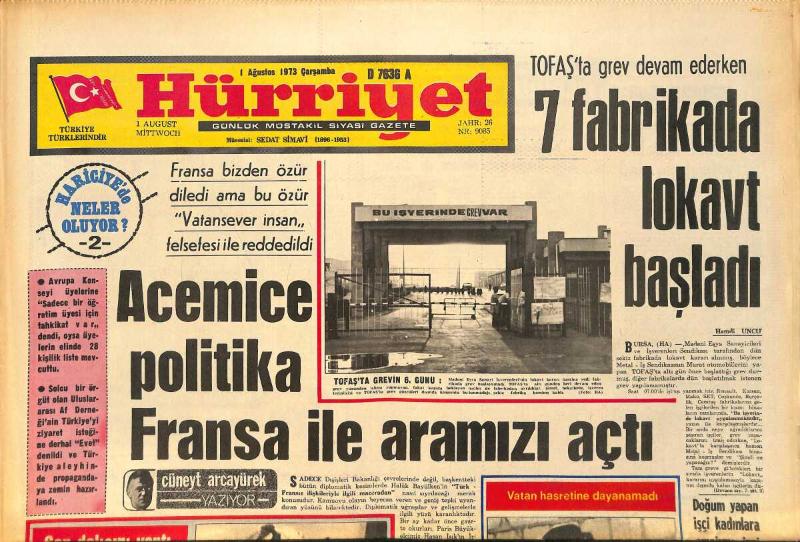Hürriyet Gazetesi 1 Ağustos 1973 - Makarios : Grivas Türklere Hizmet Ediyor - TOFAŞ'ta Grev Devam Ederken 7 Fabrikada Lokavt Başladı GZ157761, en son 18 gün önce güncellenmiştir.