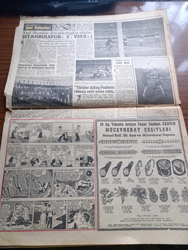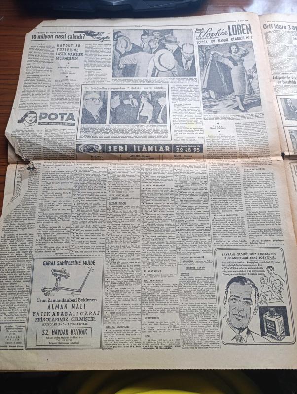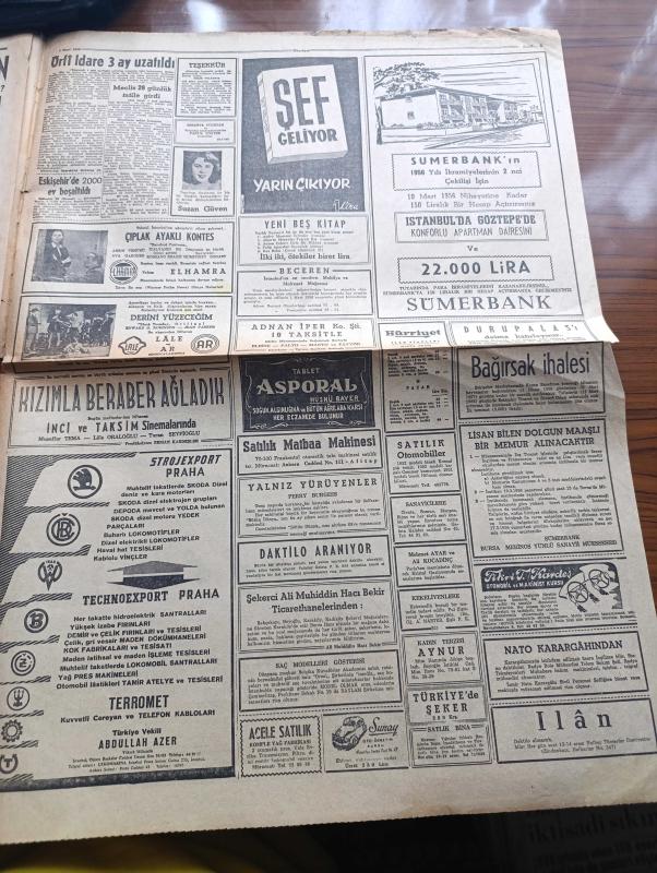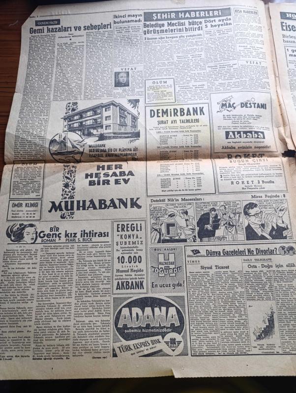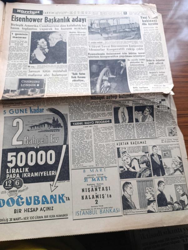 Hürriyet Gazetesi - 1 Mart 1956 - Bütçeyi Kabul Eden Meclis Tatile Girdi - 487 Mebustan 67 si Aleyhte Rey Verdi 1 i Müstenkif Kaldı - Pahalılıktan Müşteriler Azalınca Tenzilatlı Satışlar Ortaya Çıktı - Kadın Şarlo - Grace Kelly Ve Rita Gam Fotoğraf - Devlet Vekili Emin Kalafat'ın Açıklaması - Örfi İdare İstanbul'da 6 Haziran 1956 Tarihine Kadar Uzatıldı - Bir Genç Kız İhtirası Roman Pearl S. Buck Yazı Dizisi - Dedektif Nik'in Maceraları Çizgi Roman - Dünya Gazeteleri Ne Diyorlar - Eisenhower Başkanlık Adayı - Balık Fiyatını Balık Kurumu Yükseltiyor - Aşktan Kaçılmaz Aşk Ve Macera Romanı Çizen Faruk Geç - Napoli Bombası Sophia Loren Ve Dedikodulu Aşkları Yazan Bebek Tiergen Yazı Dizisi - Tarihin En Büyük Vurgunu 10 Milyon Nasıl Çalındı Yazan Joseph F. Dinneen Yazı Dizisi - Fenerbahçe Önümüzdeki İki Hafta İzmir'de İki Karşılaşma Yapacak - Türkler Albay Puşkaş'ı Türbesi Nefer Haline Soktu - Ordu Takımımız Almanya'da - Fatoş Çizgi Roman - Güngörmüşler Çizgi Roman - Gökler Hakimi Gordon adlı eser, Kitap > Süreli Yayınlar > Gazeteler > Türkiye > Genel > Günlük kategorisinde İkinci El olarak satıştadır.