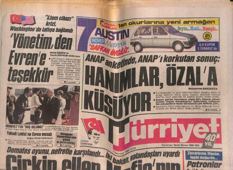 Hürriyet Gazetesi 1 Temmuz 1988 - İstanbul'da 2. Köprü Bayramı - Zeliha Berksoy: Babam Kuzu, Annem Panterdi GZ153370, en son 19 gün önce güncellenmiştir.