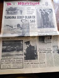 Hürriyet Gazetesi - 10 Aralık 1966 - Erzurum Dumlu Nahiyesinde 247. Piyade Alayı Karargahında Meydana Gelen Yangın Sonunda 65 Er Şehit Oldu - Yangından Ağır Yanıklarla Kurtulan Asker Sayısı 27 - Yaralı Askerler Erzurum'da Mareşal Fevzi Çakmak Askerî Hastanesi'nde Tedavi Altına Alınmıştır - Yangına Sebep Olan Er Sağ - Al Bayrağa Sarılı 65 Tabut Geçerken Oktay Köse Yazıyor - Kumandan Dahi Bilgeataç Ağlıyor - Polis Katili İrfan Vural Yakalanmadan Suriye'ye Kaçacaktı- Beyaz Rüya Aşk Ve Macera Romanı Çizen Faruk Geç - Burç Falınız - Unkapanında Turistik Gazinolar Yapılacak - Vat 69 Viski - Bizimkiler Yazan Kemal Bisalman Çizen Sezgin Burak - Ediz Hun Fatma Girik'i Evire Çevire Dövdü - Türkan Soray'ın Yeni Fiyatı 75.000 Lira - Belgin Doruk Bebek Hazırlığına Başladı - Ferdi Özbeğen Beatles Tipi Müziğe Başladı - Rüçhan Çamay Beğenildi - Güngörmüşler Çizgi Roman - Gökler Hakimi Gordon Çizgi Roman - Fatoş Çizgi Roman - Dedektif Nik'in Maceraları Çizgi Roman - İstanbul'da Sevilen 15 Şarkı adlı eser, Kitap > Süreli Yayınlar > Gazeteler > Türkiye > Genel > Günlük kategorisinde İkinci El olarak satıştadır.