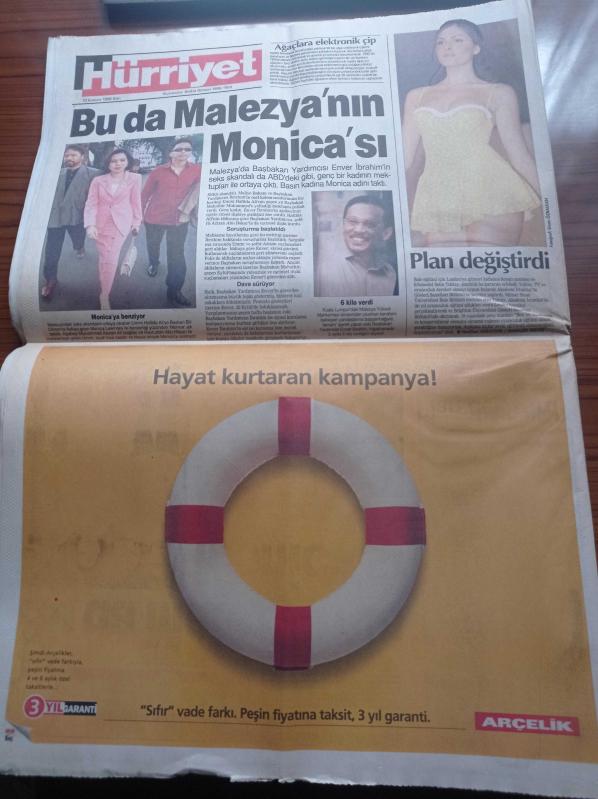 Hürriyet Gazetesi - 10 Kasım 1998 - Mustafa Kemal Atatürk Kalbimizdesin - Tarihi Fotoğraflar - Beşiktaş Fenerbahçe Atatürk Kupası İçin Karşı Karşıya - Malezya Başbakan Yardımcısı Enver İbrahim'in Seks Skandalı - Atatürk'ün Cenaze Fotoğrafları - Tarkan - Mustafa Sandal - Kenan Doğulu - Hüsamettin Özkan - İstemihan Talay - Hikmet Uluğbay - Korkmaz Yiğit Gözaltında - Recep Tayyip Erdoğan Ben Hala Başkanım adlı eser Türkçe dilindedir.