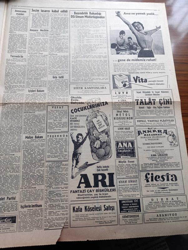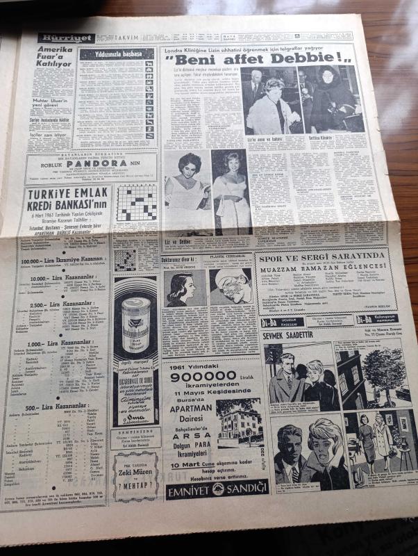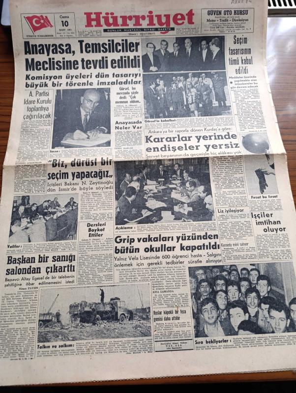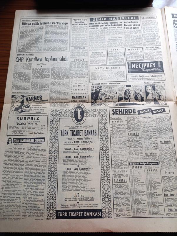 Hürriyet Gazetesi - 10 Mart 1961 - Anayasa Temsilciler Meclisine Tevdi Edildi - Adalet Partisi İdare Kurulu Toplantıya Çağrılacak - Orgeneral Cemal Gürsel'in Kabulleri - Seçim Tasarısının Tümü Kabul Edildi - Maliye Bakanı Kemal Kurdaş - Servet Beyanının Da Geçmişle Hiç Alakası Yok - Elizabeth Taylor İyileşiyor - Başkan Altay Ömer Egesel Bir Sanığı Salondan Çıkarttı - Ankara Üniversitesi Dil Tarih Coğrafya Fakültesinde Öğrenciler Dersleri Boykot Ettiler - Grip Vakaları Yüzünden Bütün Okullar Kapatıldı - Ruslar Köpekli Bir Feza Gemisi Daha Attılar - Gün Battıktan Sonra Aşk Romanı Yazan Elizabeth Seiffert Yazı Dizisi - Dedektif Nik'in Maceraları Çizgi Roman - Doktorunuz Diyor Ki Hazırlayan Profesör Doktor Nuri Ergene - Sevmek Saadettir Aşk Ve Macera Romanı Çizen Faruk Geç - Paris'in Yeni Gözdesi Sophie Real - Stadlarda Taşkınlık Yapan Seyirciler Cezalandırılacak - Naci Erdem - Hilmi Kiremitçi - Fatoş Çizgi Roman - Güngörmüşler Çizgi Roman - Gökler Hakimi Gordon Çizgi Roman - Nilüfer adlı eser, Kitap > Süreli Yayınlar > Gazeteler > Türkiye > Genel > Günlük kategorisinde İkinci El olarak satıştadır.
