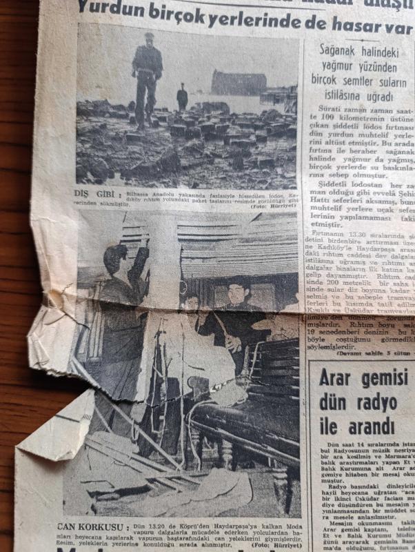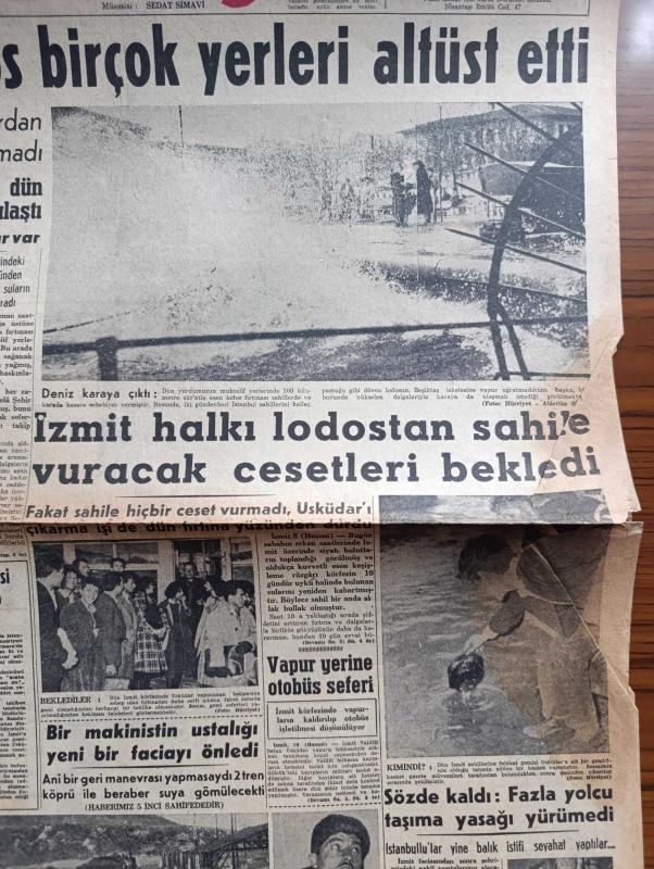 Hürriyet Gazetesi - 11 Mart 1958 - şiddetli lodos birçok yerleri altüst etti fotoğraf - deniz karaya çıktı fotoğraf - İzmit halkı lodostan sahile vuracak cesetleri bekledi - Dün İzmit körfezi'ndeki fırtına Üsküdar vapurunun batmasına sebep olan fırtınadan daha sertti - moda vapuru yolcuları Can yeleklerini giydiler - moda vapurunu dalgalar arasından tereyağından kıl gibi çeken 25 yıllık Necmi Kaptan vazifem budur diyor fotoğraf - arar gemisi dün Radyo ile arandı - Dil iskelesi istasyonunda bir makinistin ustalığı yeni tren faciasını önledi - Kıbrıs meselesinin sürüncemede bırakılmasından Türkiye şikayetçi - Rapacki planının tehlikeleri Yazan Georges Blun - Pekin'den mektup yazan Pearl S. Buck Yazı Dizisi - İstanbul'da sinema ve tiyatro programı - yeni tiyatroda gönül kaçanı kovalar oyunu - Kader filmi başrolde Belgin Doruk Akın sinemasında - Üsküdar vapurunun batışı ile alakalı mühim sorular - Ordu takımımız lüksemburg'da - Metin Oktay Ordu takımı idmanında fotoğraf -Adalet Vefa maçı, Sedat Simavi tarafından kaleme alınmıştır. Hürriyet Gazetesi - 11 Mart 1958 - şiddetli lodos birçok yerleri altüst etti fotoğraf - deniz karaya çıktı fotoğraf - İzmit halkı lodostan sahile vuracak cesetleri bekledi - Dün İzmit körfezi'ndeki fırtına Üsküdar vapurunun batmasına sebep olan fırtınadan daha sertti - moda vapuru yolcuları Can yeleklerini giydiler - moda vapurunu dalgalar arasından tereyağından kıl gibi çeken 25 yıllık Necmi Kaptan vazifem budur diyor fotoğraf - arar gemisi dün Radyo ile arandı - Dil iskelesi istasyonunda bir makinistin ustalığı yeni tren faciasını önledi - Kıbrıs meselesinin sürüncemede bırakılmasından Türkiye şikayetçi - Rapacki planının tehlikeleri Yazan Georges Blun - Pekin'den mektup yazan Pearl S. Buck Yazı Dizisi - İstanbul'da sinema ve tiyatro programı - yeni tiyatroda gönül kaçanı kovalar oyunu - Kader filmi başrolde Belgin Doruk Akın sinemasında - Üsküdar vapurunun batışı ile alakalı mühim sorular - Ordu takımımız lüksemburg'da - Metin Oktay Ordu takımı idmanında fotoğraf -Adalet Vefa maçı adlı eser Türkçe dilindedir.