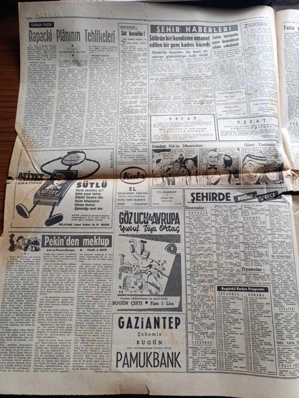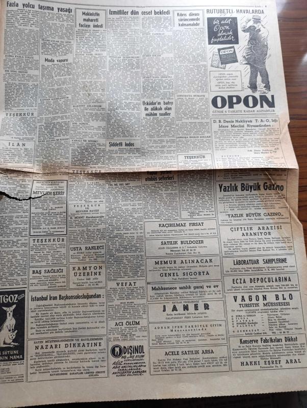 Hürriyet Gazetesi - 11 Mart 1958 - şiddetli lodos birçok yerleri altüst etti fotoğraf - deniz karaya çıktı fotoğraf - İzmit halkı lodostan sahile vuracak cesetleri bekledi - Dün İzmit körfezi'ndeki fırtına Üsküdar vapurunun batmasına sebep olan fırtınadan daha sertti - moda vapuru yolcuları Can yeleklerini giydiler - moda vapurunu dalgalar arasından tereyağından kıl gibi çeken 25 yıllık Necmi Kaptan vazifem budur diyor fotoğraf - arar gemisi dün Radyo ile arandı - Dil iskelesi istasyonunda bir makinistin ustalığı yeni tren faciasını önledi - Kıbrıs meselesinin sürüncemede bırakılmasından Türkiye şikayetçi - Rapacki planının tehlikeleri Yazan Georges Blun - Pekin'den mektup yazan Pearl S. Buck Yazı Dizisi - İstanbul'da sinema ve tiyatro programı - yeni tiyatroda gönül kaçanı kovalar oyunu - Kader filmi başrolde Belgin Doruk Akın sinemasında - Üsküdar vapurunun batışı ile alakalı mühim sorular - Ordu takımımız lüksemburg'da - Metin Oktay Ordu takımı idmanında fotoğraf -Adalet Vefa maçı adlı eser, Kitap > Süreli Yayınlar > Gazeteler > Türkiye > Genel > Günlük kategorisinde İkinci El olarak satıştadır.