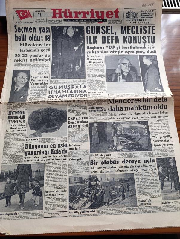 Hürriyet Gazetesi - 11 Mart 1961 - Seçmen Yaşı Belli Oldu 18 - Cemal Gürsel Mecliste İlk Defa Konuştu - Ragıp Gümüşpala'nın İthamlarına Devam Ediyor - Adnan Menderes Bir Defa Daha Mahkum Oldu - Dünyanın En Eski Yanardağı Kula'da - İçişleri Bakanı Nasır Zeytinoğlu Korunmak İstemiyor - 147'lerin İkinci Beyannamesi - Grip Tatili Sinemaların İşine Yaramış - Amerika Türkiye'ye Uranyum Gönderiyor - Gün Battıktan Sonra Aşk Romanı Yazan Elizabeth Seiffert Yazı Dizisi - Dedektif Nik'in Maceraları Çizgi Roman - İstanbul'da Bugün Sinema Ve Tiyatro Programı - Ordu Takımımız Tur Atladı - Mahalli Ligin 2 Karşılaşması Bugün Yapılıyor - Fatoş Çizgi Roman - Güngörmüşler Çizgi Roman - Gökler Hakimi Gordon Çizgi Roman - Nilüfer Çizgi Roman adlı eser, Kitap > Süreli Yayınlar > Gazeteler > Türkiye > Genel > Günlük kategorisinde İkinci El olarak satıştadır.