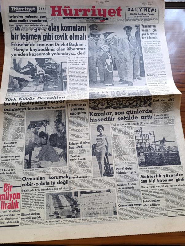 Hürriyet Gazetesi - 12 Ağustos 1960 - Eskişehir'de Konuşan Devlet Başkanı Cemal Gürsel - Türk Kültür Dernekleri Bu Ay Faaliyette Geçiyor - Yunanistan Da Ordusunu Gençleştiriyor - Yapılmayan Yollar İçin Yüz Binlerce Lira Ödenmiş - Nurcular Hakkında Malumat İstendi - Petrol Değil Hidrojen Gazı - İsimsiz Kadın Aşk Ve His Romanı Yazan Theresa Drake Yazı Dizisi - Diplomasi Ve İlim Yazan Doçent Doktor Vakur Versan - Olimpiyatlar İçin Yeni Seri Pul Hazırlandı - Sevim Tanürek Belvü Aile Gazinosunda - İsviçre'ye Yabancı Para Akını Endişe Uyandırıyor - Sancılı Toprak Cezayir Yazı ve Resimler Tahsin Öztin Yazı Dizisi - Mukaddes Sır Aşk Ve Macera Romanı Çizen Faruk Geç - Güney Kore'deki Demokrasi Tecrübesi - Amerika'nın İlk Feza Limanını Gezerken - Hürrem Sultan Yazan Feridun Fazıl Tülbentçi Yazı Dizisi - Milli Ligin Yeni Şekli İki Gün İçinde Belli Olacak - Roma Olimpiyatına İştirak Edecek Güreşçilerimizin Son Seçme Müsabakaları Bugün Yapılıyor - Amatör Milli Takımımız Fenerbahçe'ye Yenildi, Sedat Simavi tarafından kaleme alınmıştır. Hürriyet Gazetesi - 12 Ağustos 1960 - Eskişehir'de Konuşan Devlet Başkanı Cemal Gürsel - Türk Kültür Dernekleri Bu Ay Faaliyette Geçiyor - Yunanistan Da Ordusunu Gençleştiriyor - Yapılmayan Yollar İçin Yüz Binlerce Lira Ödenmiş - Nurcular Hakkında Malumat İstendi - Petrol Değil Hidrojen Gazı - İsimsiz Kadın Aşk Ve His Romanı Yazan Theresa Drake Yazı Dizisi - Diplomasi Ve İlim Yazan Doçent Doktor Vakur Versan - Olimpiyatlar İçin Yeni Seri Pul Hazırlandı - Sevim Tanürek Belvü Aile Gazinosunda - İsviçre'ye Yabancı Para Akını Endişe Uyandırıyor - Sancılı Toprak Cezayir Yazı ve Resimler Tahsin Öztin Yazı Dizisi - Mukaddes Sır Aşk Ve Macera Romanı Çizen Faruk Geç - Güney Kore'deki Demokrasi Tecrübesi - Amerika'nın İlk Feza Limanını Gezerken - Hürrem Sultan Yazan Feridun Fazıl Tülbentçi Yazı Dizisi - Milli Ligin Yeni Şekli İki Gün İçinde Belli Olacak - Roma Olimpiyatına İştirak Edecek Güreşçilerimizin Son Seçme Müsabakaları Bugün Yapılıyor - Amatör Milli Takımımız Fenerbahçe'ye Yenildi adlı eser Türkçe dilindedir.