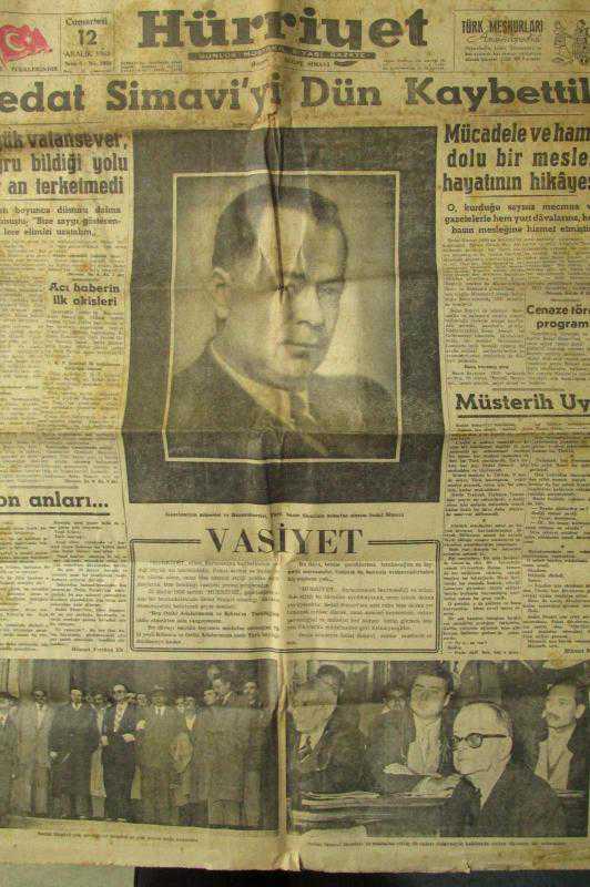 Hürriyet Gazetesi - 12 Aralık 1953 - Sedat Simavi Ölüm Haberi, 7 yıl önce satışa sunulmuştur.