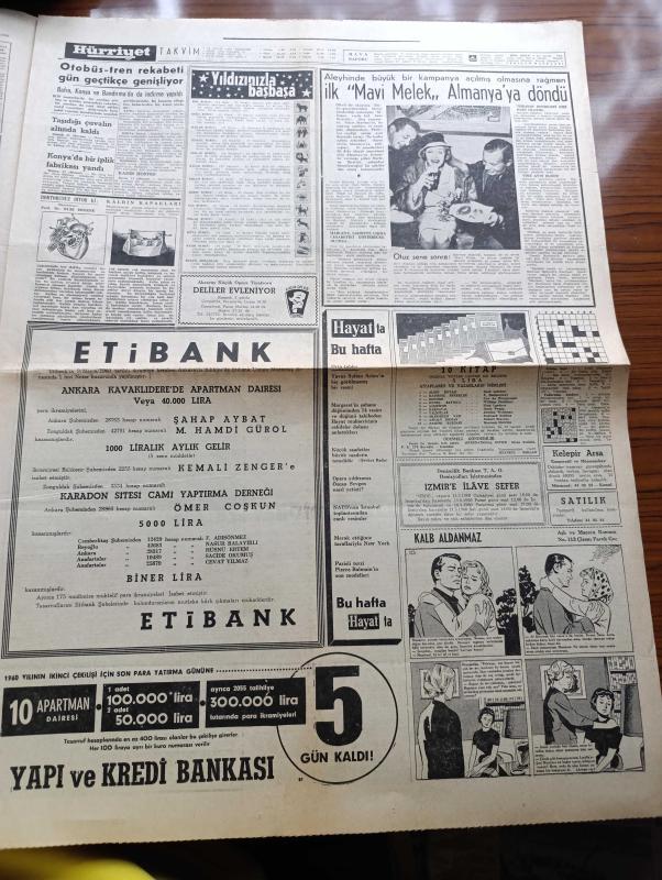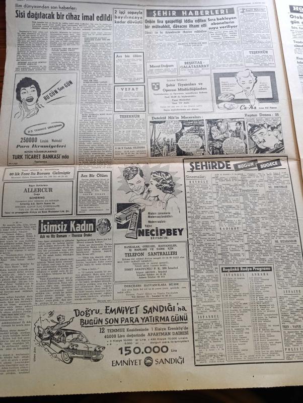 Hürriyet Gazetesi - 12 Mayıs 1960 - Meclis 23 Mayıs'a Kadar 11 Günlük Bir Tatile Girdi - Ankara'da At Yarışlarına İzin Verildi - Sudan Başvekil Yardımcısı Dün Ankara'ya Geldi - Adnan Menderes Dün İstanbul'a Geldi - Atatürk Lalesi Hollanda'da - Eisenhower Hala Zirve Konferansından Ümitli - Ankara'nın Su Projesi İçin Bir Heyet Rusya'ya Gönderiliyor - Ankara'da iki Basın Mahkumiyeti - İsimsiz Kadın Aşk Ve His Romanı Yazan Theresa Drake Yazı Dizisi - Sisi Dağıtacak Bir Cihaz İmal Edildi - Dedektif Nik'in Maceraları Çizgi Roman - Otobüs Tren Rekabeti Gün Geçtikçe Genişliyor - Burç Falınız - Kalp Aldanmaz Aşk Ve Macera Romanı Çizen Faruk Geç - Pascale Petit Brigitte Bardot'un Yerini Alıyor - Lili Saint Cyr Avrupalı Striptizcileri İle Yarışta - Allah Çocukları Unuttu Yazan Oya Baydar - Hürrem Sultan Yazan Feridun Fazıl Tülbentçi Yazı Dizisi - Dün Oran'a Varan Ordu Futbol Takımı Bugün İdman Yapacak - İtalyan Antrenör Sandra Puppo Fenerbahçe'nin Teklifini Kabul Etti - Gündüz Kılıç adlı eser, Kitap > Süreli Yayınlar > Gazeteler > Türkiye > Genel > Günlük kategorisinde İkinci El olarak satıştadır.