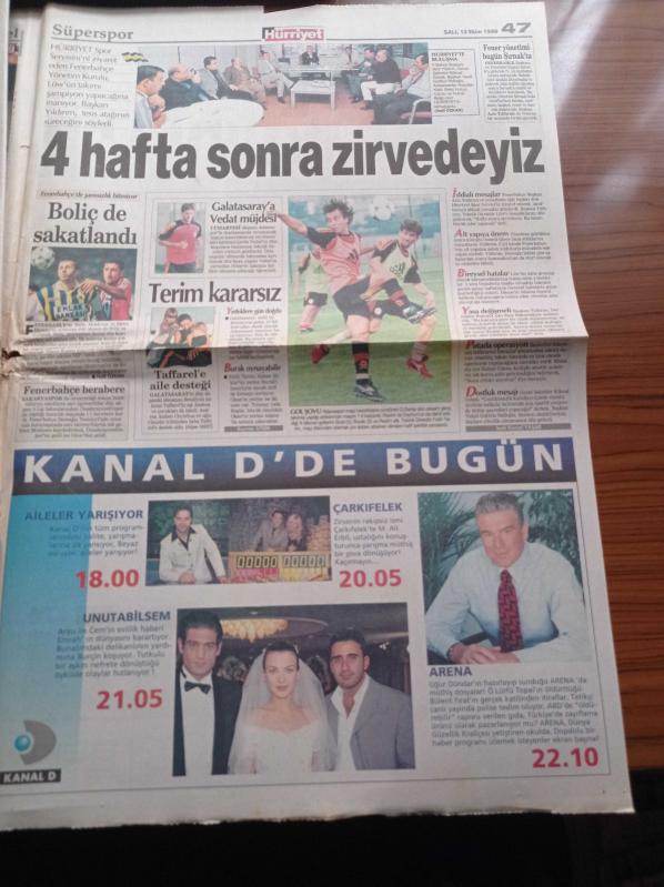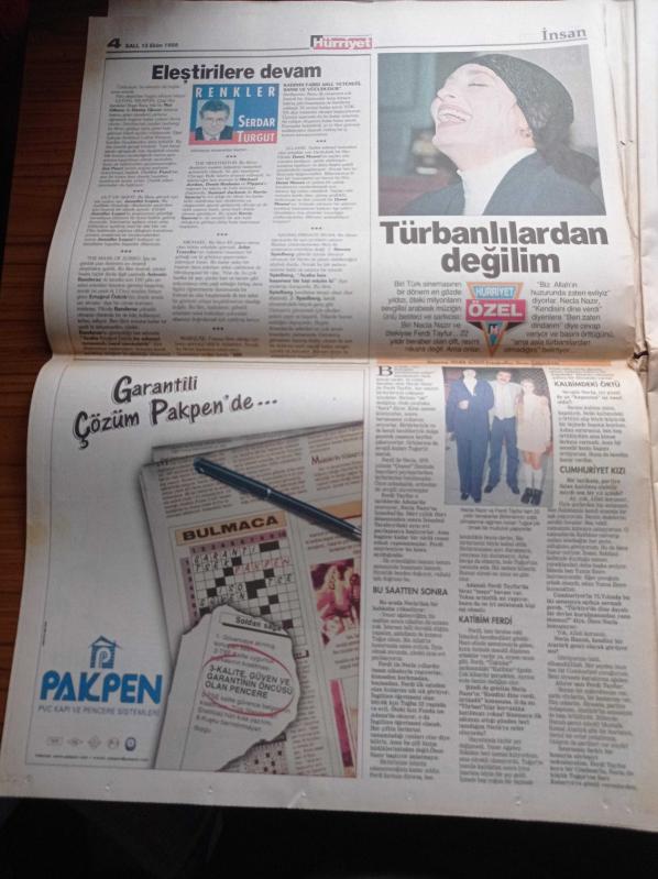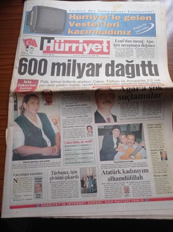 Hürriyet Gazetesi - 13 Ekim 1998 - Alaattin Çakıcı 600 Milyar Dağıttı - Orhan Gencebay'ın Oğlunun Nikâh Şahidi Sakıp Sabancı - İşte Alaattin Çakıcı'nın Fatma Uçan ablası - Necla Nazır Atatürk Kadınıyım Elhamdülillah - Köprüde Türban Eylemi - Mehmet Ağar'a Şok Suçlama - Mehmet Eymür - Elvir Boliç Sakatlandı adlı eser Türkçe dilindedir.