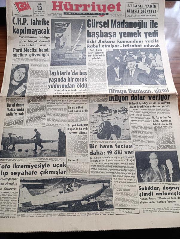 Hürriyet Gazetesi - 13 Haziran 1961 - Cumhuriyet Halk Partisi Tahrike Kapılmayacak - Cemal Gürsel Cemal Madanoğlu İle Başbaşa Yemek Yedi - Bu Yıl Sigara Fiyatlarında İndirim Yok - Dünya Bankası Yirmi Milyon Dolar Veriyor - Sabık Başvekil Adnan Menderes'in Avukatı Burhan Apaydın İle Zihni Kanmaz Mahkum Oldu - Sabıklar Doğruyu Şimdi Anlamışlar - Toto İkramiyesiyle Uçak Alıp Seyahate Çıkmışlar - Gün Battıktan Sonra Aşk Romanı Yazan Elizabeth Seiffert Yazı Dizisi - Hilton'a 6 Yılda Giren Para 6 Milyon Dolar - Dedektif Nik'in Maceraları Çizgi Roman - Prenses Süreyya Yeni Bir Hayata Kavuşmak Üzere - Mavi Ufuklar Aşk Ve Macera Romanı Çizen Faruk Geç - Defterimi Kapıyorum Aşk Romanı Yazan Fazıla Atabek Yazı işleri - İnternationale Kulübü Pele'ye 7 Milyon 700 Bin Lira Teklif Etti - Greaves Milan Forması İle - Feriköy Antrenör Kutik'le Prensip Anlaşmasına Vardı - Fatoş Çizgi Roman - Güngörmüşler Çizgi Roman - Gökler Hakimi Gordon Çizgi Roman - Nilüfer Çizgi Roman - Fenerbahçe Kampa Giriyor adlı eser, Kitap > Süreli Yayınlar > Gazeteler > Türkiye > Genel > Günlük kategorisinde İkinci El olarak satıştadır.