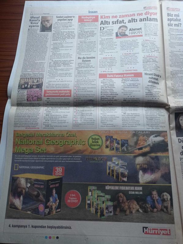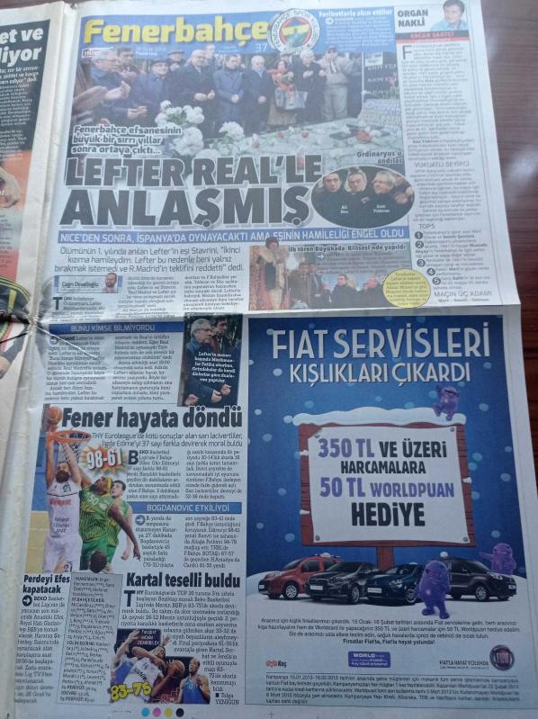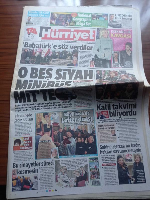 Hürriyet Gazetesi - 14 Ocak 2013 - Fenerbahçe Efsanesi Lefter Küçükandonyadis'in Sırrı Real Madrid İle Anlaşmış - Aziz Yıldırım - Babatürk Rauf Denktaş'a Söz Verdiler - Derin Mermerci - Rıza Kocaoğlu - Yaşadığı Dinlemeler İçin Kullanıldığı İddia Edilen O Beş Siyah Minibüs MİT'te - Paris Cinayetinin Asıl Hedefi Sakine Cansız - Avukat Eren Keskin Sakine Cansız Gerçek Bir Kadın Hakları Savunucusuydu adlı eser Türkçe dilindedir.