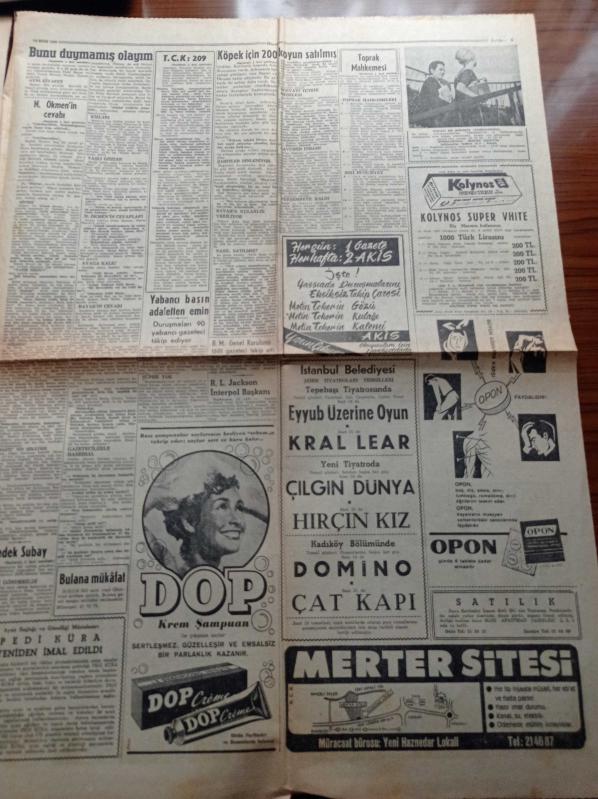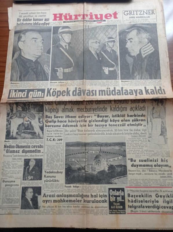 Hürriyet Gazetesi - 16 Ekim 1960 - Yassıada Köpek Davası - Celal Bayar'ın Kızı Nilüfer Gürsoy Babanız Adnan Menderes İle Dargın Mıydı Sorusuna Cevap Verdi - Celal Bayar İle Nedim Ökmen İçin Tatbiki İstenen Madde T.C.K 209 - Yüksek Adalet Divanı Başkanı Salim Başol - Altay Ömer Egesel - Fenerbahçe İzmir'de Karşıyaka'yı 7 1 Yendi - Mahallî Lig - Basketbolda Galatasaray Darüşşafaka'yı Yendi adlı eser, Kitap > Süreli Yayınlar > Gazeteler kategorisinde İkinci El olarak satıştadır.