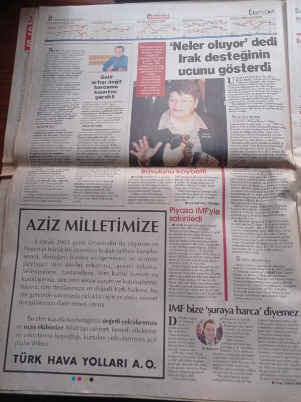 Hürriyet Gazetesi - 16 Ocak 2003 - Recep Tayyip Erdoğan Ve Ali Müfit Gürtuna'ya BİT Davasından Jet Beraat - Rıdvan Dilmen'in Yarış Atı Jay Jay'e Haciz Kondu - Fenerbahçe Efes Cup'ta Finalde - BDDK Başkanı Engin Akçakoca - Başbakan Abdullah Gül Savaş Patlarsa Başımıza Patlar - Türk Tıbbında Yeni Dönem İlk İngiliz Hastamız Geldi - Yunan Basınının Yeşil Hat Tahriki - Bilal Erdoğan - Hülya Avşar 1.5 Trilyon Vergi Ödeyecek adlı eser Türkçe dilindedir.