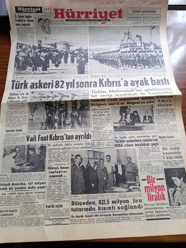 Hürriyet Gazetesi - 17 Ağustos 1960 - Türk Askeri 82 Yıl Sonra Kıbrıs'a Ayak Bastı - Türk Birliğini Kıbrıs'ta Karşılama Töreni Fotoğraf - Türkiye'nin İlk Kıbrıs Büyükelçisi Emin Dırvana Lefkoşa'ya Gitti - Vali Foot Kıbrıs'tan Ayrıldı - Kıbrıslı Türkler Mehmetçikleri Görülmemiş Bir Sevgi Tezahüratı İle Karşıladılar - EOKA'cılar Kıbrıs'a Dönüyor - Bir İngiliz Radyo Muhabirine Göre Türkler Askerlere Rumlar İse EOKA'cılara Tezahürat Yaptı - Birleşik Amerika'dan 127 Milyon Liralık Daha Yardım Yapıldı - İsimsiz Kadın Aşk Ve His Romanı Yazan Theresa Drake Yazı Dizisi - Dedektif Nik'in Maceraları Çizgi Roman - Roma Olimpiyatı Başlamadan Evvel Çıkan İlk İhtilaf - FİLA Reisine Göre 57 Kiloda Sadrettin Özden İle 67 Kiloda Osman Kambur Güreşlere Girmeyecek - Metin Oktay Oya Oktay Çifti Ayrılıyor - Mukaddes Sır Aşk Ve Macera Romanı Çizen Faruk Geç - Hürrem Sultan Yazan Feridun Fazıl Tülbentçi Yazı Dizisi - Nazi Kasabı Eichman'ı Metresi İle Karısının Ele Verdiği Söyleniyor - Asker Kıbrıs'ta Foto, Sedat Simavi tarafından kaleme alınmıştır. Hürriyet Gazetesi - 17 Ağustos 1960 - Türk Askeri 82 Yıl Sonra Kıbrıs'a Ayak Bastı - Türk Birliğini Kıbrıs'ta Karşılama Töreni Fotoğraf - Türkiye'nin İlk Kıbrıs Büyükelçisi Emin Dırvana Lefkoşa'ya Gitti - Vali Foot Kıbrıs'tan Ayrıldı - Kıbrıslı Türkler Mehmetçikleri Görülmemiş Bir Sevgi Tezahüratı İle Karşıladılar - EOKA'cılar Kıbrıs'a Dönüyor - Bir İngiliz Radyo Muhabirine Göre Türkler Askerlere Rumlar İse EOKA'cılara Tezahürat Yaptı - Birleşik Amerika'dan 127 Milyon Liralık Daha Yardım Yapıldı - İsimsiz Kadın Aşk Ve His Romanı Yazan Theresa Drake Yazı Dizisi - Dedektif Nik'in Maceraları Çizgi Roman - Roma Olimpiyatı Başlamadan Evvel Çıkan İlk İhtilaf - FİLA Reisine Göre 57 Kiloda Sadrettin Özden İle 67 Kiloda Osman Kambur Güreşlere Girmeyecek - Metin Oktay Oya Oktay Çifti Ayrılıyor - Mukaddes Sır Aşk Ve Macera Romanı Çizen Faruk Geç - Hürrem Sultan Yazan Feridun Fazıl Tülbentçi Yazı Dizisi - Nazi Kasabı Eichman'ı Metresi İle Karısının Ele Verdiği Söyleniyor - Asker Kıbrıs'ta Foto adlı eser Türkçe dilindedir.