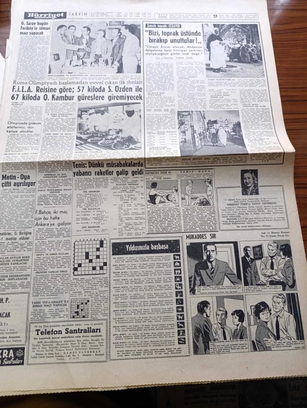 Hürriyet Gazetesi - 17 Ağustos 1960 - Türk Askeri 82 Yıl Sonra Kıbrıs'a Ayak Bastı - Türk Birliğini Kıbrıs'ta Karşılama Töreni Fotoğraf - Türkiye'nin İlk Kıbrıs Büyükelçisi Emin Dırvana Lefkoşa'ya Gitti - Vali Foot Kıbrıs'tan Ayrıldı - Kıbrıslı Türkler Mehmetçikleri Görülmemiş Bir Sevgi Tezahüratı İle Karşıladılar - EOKA'cılar Kıbrıs'a Dönüyor - Bir İngiliz Radyo Muhabirine Göre Türkler Askerlere Rumlar İse EOKA'cılara Tezahürat Yaptı - Birleşik Amerika'dan 127 Milyon Liralık Daha Yardım Yapıldı - İsimsiz Kadın Aşk Ve His Romanı Yazan Theresa Drake Yazı Dizisi - Dedektif Nik'in Maceraları Çizgi Roman - Roma Olimpiyatı Başlamadan Evvel Çıkan İlk İhtilaf - FİLA Reisine Göre 57 Kiloda Sadrettin Özden İle 67 Kiloda Osman Kambur Güreşlere Girmeyecek - Metin Oktay Oya Oktay Çifti Ayrılıyor - Mukaddes Sır Aşk Ve Macera Romanı Çizen Faruk Geç - Hürrem Sultan Yazan Feridun Fazıl Tülbentçi Yazı Dizisi - Nazi Kasabı Eichman'ı Metresi İle Karısının Ele Verdiği Söyleniyor - Asker Kıbrıs'ta Foto adlı eser, Kitap > Süreli Yayınlar > Gazeteler > Türkiye > Genel > Günlük kategorisinde İkinci El olarak satıştadır.