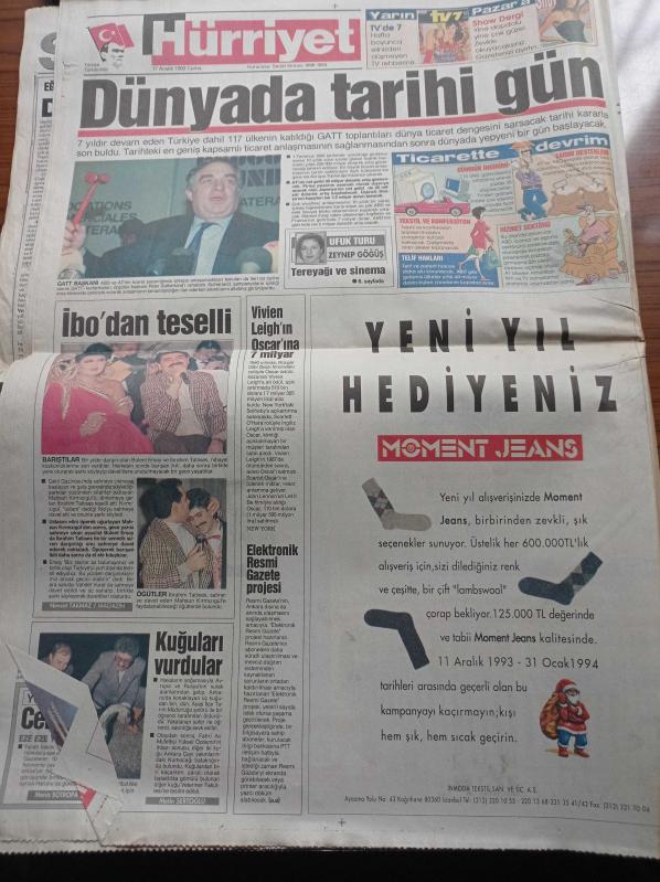 Hürriyet Gazetesi - 17 Aralık 1993 - Fenerbahçe Harun Erdenay NBA Yıldızı Gibi - Takma Efes Pilsen - Mahsun Kırmızıgül'e İbrahim Tatlıses'ten Öğütler - Bülent Ersoy - Tansu Çiller İstanbul İçin Pazarlık Yok - Bedrettin Dalan'a Vizeyi Parti Verecek - Cavit Çağlar'ın Malvarlığı 7 Trilyon - Bedrettin Dalan Patladı - Tansu - Mesut Yılmaz - Murat Karayalçın adlı eser Türkçe dilindedir.