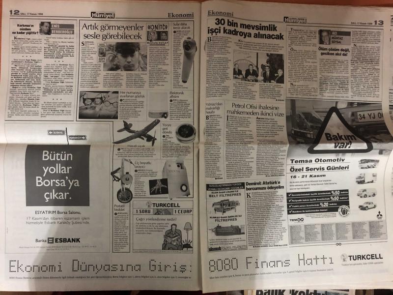 Hürriyet Gazetesi - 17 Kasım 1998 Bero - - İtalya - Almanya - Yabancı yatırım - AP - Doğuş - Tofaş - Redd - Eder - Özel Sektör - Rahmi Koç - Hollanda - İngiltere - Fransa - Belçika - Model - Güvenlik önlemleri - DYP - Hikmet Çetin - Eren - Galatasaray - Orman - Yaban hayatı - Brezilya - Rota - Avusturya - Trabzonspor - Ukrayna - Fenerbahçe - Teknik Direktör - Taffarel - Edis - Onur - Gol Krallığı - Bitki örtüsü - Beşiktaş - İspanya - Portekiz - Mario - Alpay - LP - Anayasa Mahkemesi - Sinan - AK Parti - Ege - Simge - Aydın Doğan - Ertuğrul Özkök - Tansu Çiller - Basın Toplantısı - Süleyman Demirel - Alaattin Çakıcı - Cengiz - ANAP - Mesut Yılmaz - Göksel - Yilmaz - Nez - Rusya - Danimarka - Yunanistan - Ermenistan - MHP - Agu - Beta adlı eser, Kitap > Süreli Yayınlar kategorisinde İkinci El olarak satıştadır.
