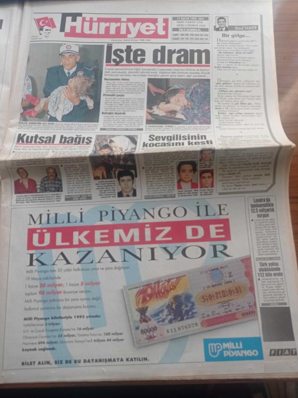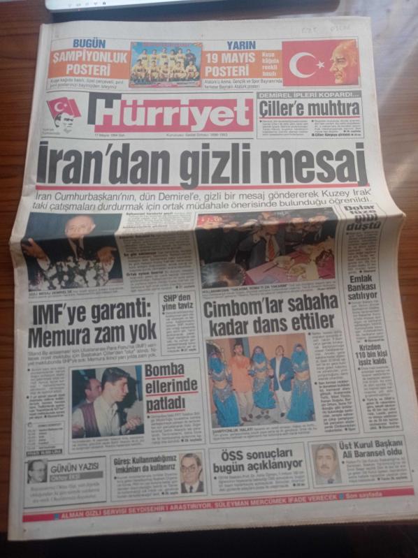 Hürriyet Gazetesi - 17 Mayıs 1994 - İran'dan Süleyman Demirel'e Gizli Mesaj - Hakan Şükür Ve Arif Erdem'den Şampiyonluk Halayı - IMF'ye Garanti Memura Zam Yok - Emlak Bankası Satılıyor - Tansu Çiller'e Muhtıra - Radyo Televizyon Üst Kurulu Başkanı Ali Baransel Oldu - Genelkurmay Başkanı Orgeneral Doğan Güreş PKK Yaz Sonuna Kadar Gündemden Düşecek adlı eser Türkçe dilindedir.