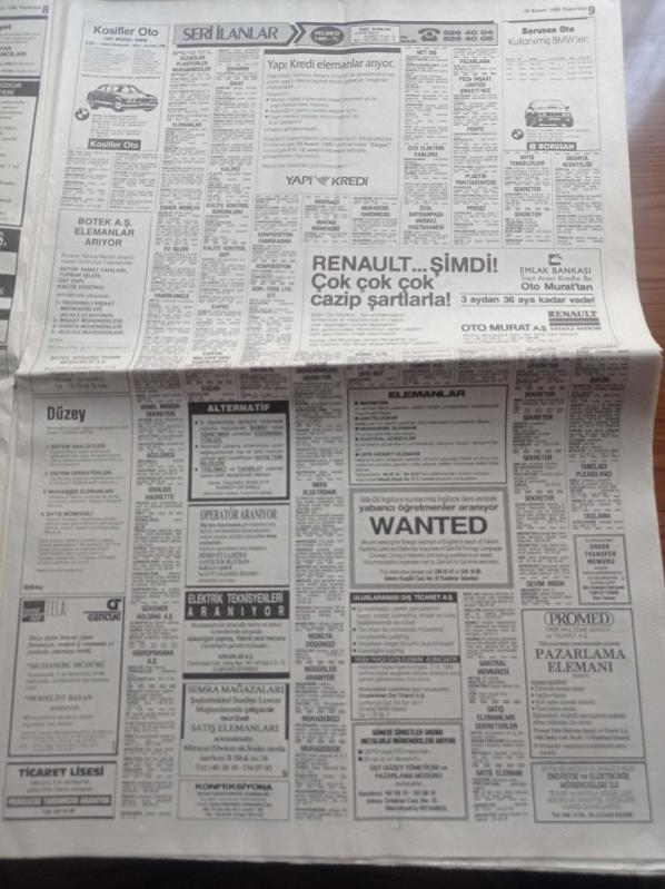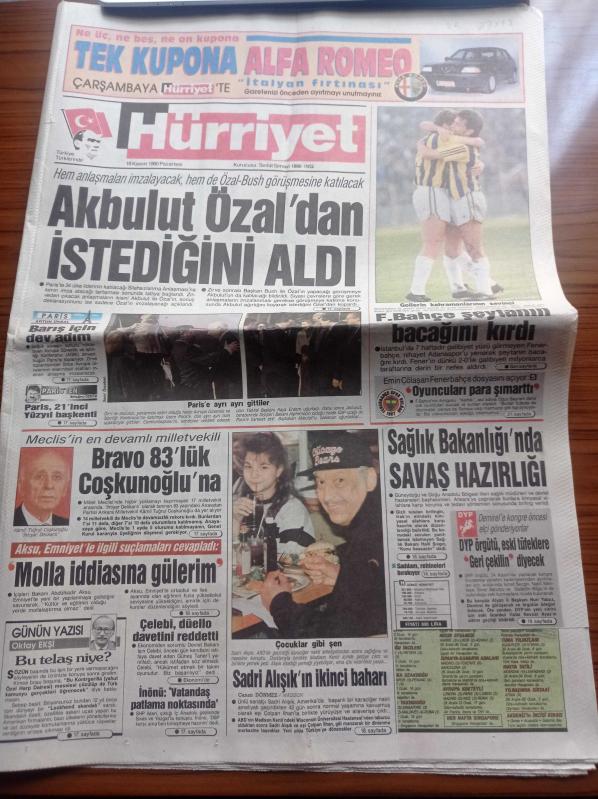 Hürriyet Gazetesi - 19 Kasım 1990 - Ali Ulvi 40 Yıldır Karikatür Çiziyor - Metin Tekin - Emin Çölaşan Fenerbahçe Dosyasını Açıyor- Aykut Kocaman - Sadri Alışık'ın İkinci Baharı - Yıldırım Akbulut Turgut Özal'dan İstediğini Aldı - Meclis'in En Devamlı Milletvekili 83'lük Kamil Tuğrul Coşkunoğlu - Devlet Bakanı Işın Çelebi Düello Davetini Reddetti - İçişleri Bakanı Abdulkadir Aksu Molla İddiasına Gülerim - Erdal İnönü adlı eser Türkçe dilindedir.