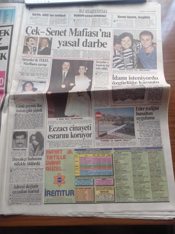 Hürriyet Gazetesi - 19 Kasım 1990 - Ali Ulvi 40 Yıldır Karikatür Çiziyor - Metin Tekin - Emin Çölaşan Fenerbahçe Dosyasını Açıyor- Aykut Kocaman - Sadri Alışık'ın İkinci Baharı - Yıldırım Akbulut Turgut Özal'dan İstediğini Aldı - Meclis'in En Devamlı Milletvekili 83'lük Kamil Tuğrul Coşkunoğlu - Devlet Bakanı Işın Çelebi Düello Davetini Reddetti - İçişleri Bakanı Abdulkadir Aksu Molla İddiasına Gülerim - Erdal İnönü adlı eser, Kitap > Süreli Yayınlar > Gazeteler kategorisinde İkinci El olarak satıştadır.
