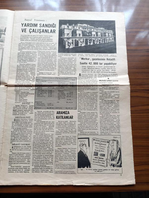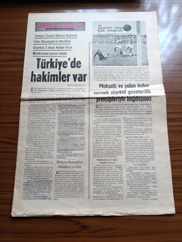 Hürriyet Gazetesi - 1967 - Temyiz Ticaret Dairesi Başkanı Sıtkı Akyazgan'ın Tekzibini İstanbul 3. Asliye Ceza Mahkemesi Yersiz Buldu Türkiye'de Hakimler Var Yazan Necati Zincirkıran - 13 Gazetede Çıkan Gol Fotoğrafı - Abidin Behpur ve Yüksel Kasapbaşı Ödülleri Verildi - Gazetecilik Ve Araştırma Yazan Esin Bilbaşar Rey - Sosyal Yönümüz Yardım Sandığı Ve Çalışanlar - Merkur Gazetesinin Rotatifi Saatte 42.000 Tur Yapabiliyor - HÜRDAĞITIM Sayesinde Aynı Günde 55 İlde Birden Okunan Gazete Hürriyet - HÜRDAĞITIM'ın Genç Müdürü Ali Ünlü Görevi Başında Fotoğraf - Gazetenin Dağıtım Şeması - Son Altı Yıl İçinde Eşine Rastlanmamış Bir Saray Devrimi Geçiren Los Angeles Times - The Los Angeles Times Gazetesinin 39 Yaşındaki Sahibi Otis Chandler Fotoğraf - Times Mirror Şirketinin Sahip Oldukları - Kardeş Gazete Son - İstanbul'da Krallar Gibi 5 Gün 5 Gece Programında SON'un Talihli Okuyucuları Bir De Ünlü Vefa Bozacısına Uğradı - Son Gazetesinin Talihlileri Maksimde - Gönül Yazar Şarkı Söylerken Foto adlı eser, Kitap > Süreli Yayınlar > Gazeteler > Türkiye > Genel > Günlük kategorisinde İkinci El olarak satıştadır.