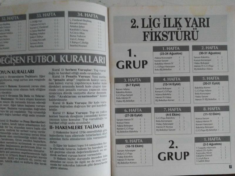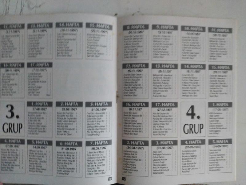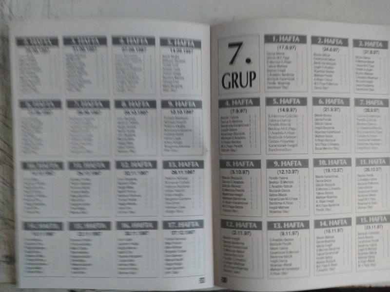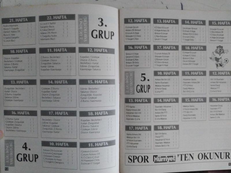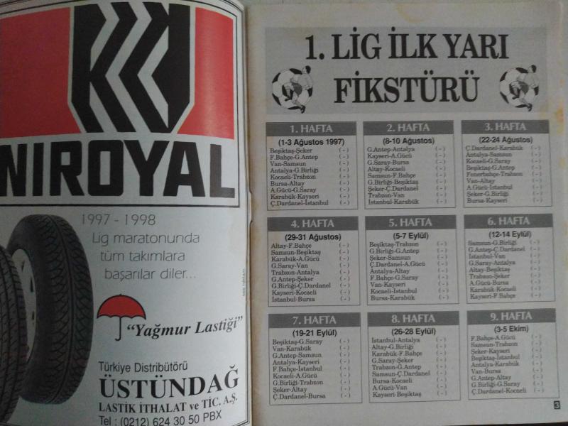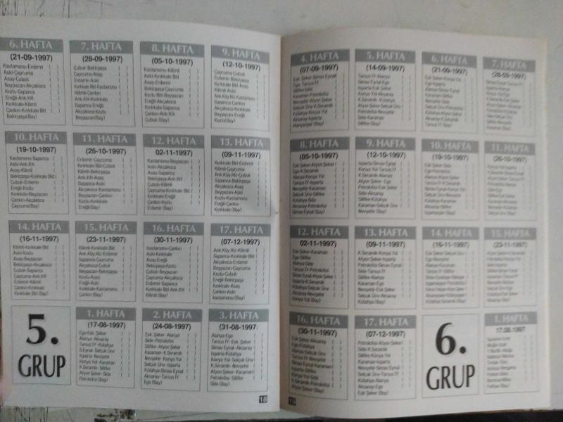 Hürriyet Gazetesi - 1997-1998 Türkiye Ligleri Fikstürü - 1. Lig İlk Yarı Fikstürü - 1. Lig İkinci Yarı Fikstürü - Değişen Futbol Kuralları - 2. Lig İlk Yarı Fikstürü - 1. Grup, 2. Grup, 3. Grup, 4.Grup ve 5. Grup - 3. Lig İlk Yarı Fikstürü - 8 Gruplu Puan Durumu fotoğraf ve haberi - Tam Takım Dergi Yıpranma, sararmalar, kupon kesiği ve yırtılmalar zamana bağlı olarak görülebilir