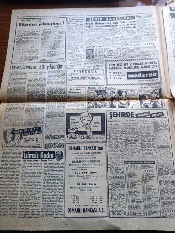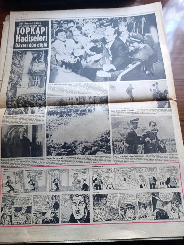 Hürriyet Gazetesi - 2 Haziran 1960 - Sabık Demokrat Parti Mebuslarının Hepsi Muhafaza Altına Alınıyor - Devlet Ve Hükümet Başkanı Cemal Gürsel Dün Gençlere Hitap Etti - İstanbul Valisi Ethem Yetkiner 2 Ayda Bankalardan 300 Bin Lira Çekmiş Mükerrem Sarol'un Da 2 Otomobili Ele Geçti - İntihar Eden Tokyo Elçisi Süreyya Anderiman İle Alakalı Tahkikat Açıldı - Sabık Uşak Valisi İlhan Engin - Topkapı Hadiseleri İle Alakalı Dava Düştü - Celal Bayar'ın Elçi Oğlu Turgut Bayar Ne Olacak - Konya Köylerine Uçakla Gazete Atılacak - Askeri Ortaokul Bandosu Kadıköy'lüleri Coşturdu - İsmet İnönü Ordunun İnkılap Hareketini Övüyor - İsimsiz Kadın Aşk Ve His Romanı Yazan Theresa Drake Yazı Dizisi - Dedektif Nik'in Maceraları Çizgi Roman - İstanbul Sinema Programı - Kalp Aldanmaz Aşk Ve Macera Romanı Çizen Faruk Geç - Allah Çocukları Unuttu Yazan Oya Baydar - İzmir Hürriyet Mücadelesine Nasıl Katılmıştı - Hürrem Sultan Yazan Feridun Fazıl Tülbentçi Yazı Dizisi - Topkapı Hadiselerinden Fotoğraflar adlı eser, Kitap > Süreli Yayınlar > Gazeteler > Türkiye > Genel > Günlük kategorisinde İkinci El olarak satıştadır.