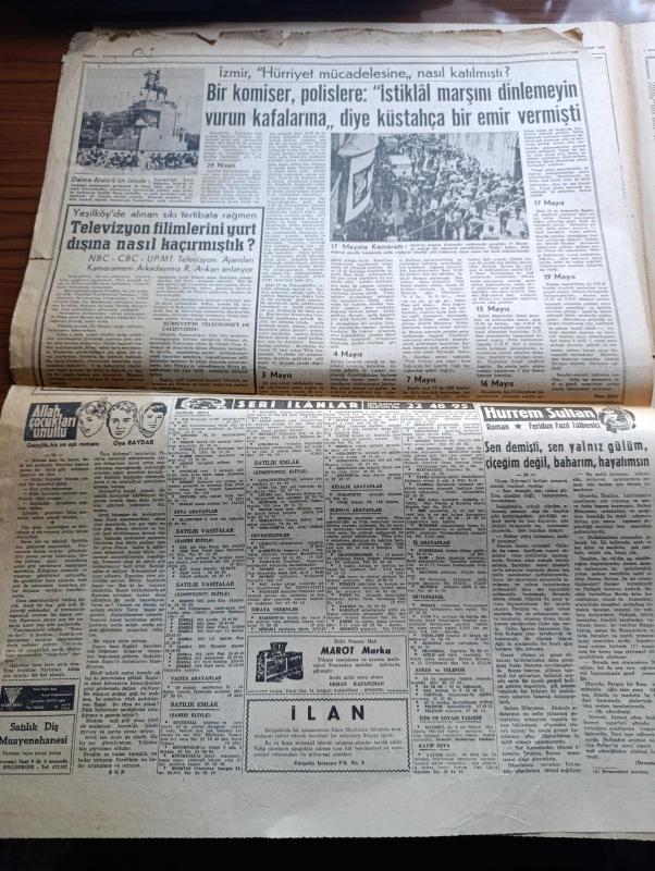 Hürriyet Gazetesi - 2 Haziran 1960 - Sabık Demokrat Parti Mebuslarının Hepsi Muhafaza Altına Alınıyor - Devlet Ve Hükümet Başkanı Cemal Gürsel Dün Gençlere Hitap Etti - İstanbul Valisi Ethem Yetkiner 2 Ayda Bankalardan 300 Bin Lira Çekmiş Mükerrem Sarol'un Da 2 Otomobili Ele Geçti - İntihar Eden Tokyo Elçisi Süreyya Anderiman İle Alakalı Tahkikat Açıldı - Sabık Uşak Valisi İlhan Engin - Topkapı Hadiseleri İle Alakalı Dava Düştü - Celal Bayar'ın Elçi Oğlu Turgut Bayar Ne Olacak - Konya Köylerine Uçakla Gazete Atılacak - Askeri Ortaokul Bandosu Kadıköy'lüleri Coşturdu - İsmet İnönü Ordunun İnkılap Hareketini Övüyor - İsimsiz Kadın Aşk Ve His Romanı Yazan Theresa Drake Yazı Dizisi - Dedektif Nik'in Maceraları Çizgi Roman - İstanbul Sinema Programı - Kalp Aldanmaz Aşk Ve Macera Romanı Çizen Faruk Geç - Allah Çocukları Unuttu Yazan Oya Baydar - İzmir Hürriyet Mücadelesine Nasıl Katılmıştı - Hürrem Sultan Yazan Feridun Fazıl Tülbentçi Yazı Dizisi - Topkapı Hadiselerinden Fotoğraflar, Sedat Simavi tarafından kaleme alınmıştır. Hürriyet Gazetesi - 2 Haziran 1960 - Sabık Demokrat Parti Mebuslarının Hepsi Muhafaza Altına Alınıyor - Devlet Ve Hükümet Başkanı Cemal Gürsel Dün Gençlere Hitap Etti - İstanbul Valisi Ethem Yetkiner 2 Ayda Bankalardan 300 Bin Lira Çekmiş Mükerrem Sarol'un Da 2 Otomobili Ele Geçti - İntihar Eden Tokyo Elçisi Süreyya Anderiman İle Alakalı Tahkikat Açıldı - Sabık Uşak Valisi İlhan Engin - Topkapı Hadiseleri İle Alakalı Dava Düştü - Celal Bayar'ın Elçi Oğlu Turgut Bayar Ne Olacak - Konya Köylerine Uçakla Gazete Atılacak - Askeri Ortaokul Bandosu Kadıköy'lüleri Coşturdu - İsmet İnönü Ordunun İnkılap Hareketini Övüyor - İsimsiz Kadın Aşk Ve His Romanı Yazan Theresa Drake Yazı Dizisi - Dedektif Nik'in Maceraları Çizgi Roman - İstanbul Sinema Programı - Kalp Aldanmaz Aşk Ve Macera Romanı Çizen Faruk Geç - Allah Çocukları Unuttu Yazan Oya Baydar - İzmir Hürriyet Mücadelesine Nasıl Katılmıştı - Hürrem Sultan Yazan Feridun Fazıl Tülbentçi Yazı Dizisi - Topkapı Hadiselerinden Fotoğraflar adlı eser Türkçe dilindedir.