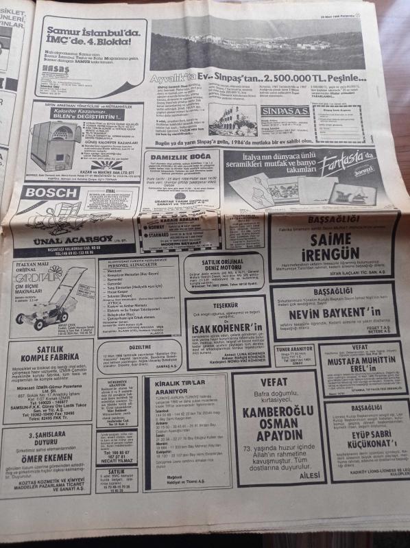 Hürriyet Gazetesi - 20 Mart 1986 - Merhum Nihat Erim'in Anıları 12 Mart Günleri Yazı Dizisi - Şike İddiası Büyüyor - Kumarhaneler Spor İçin Çalışacak - Beşiktaş Elendi - Sakıp Sabancı - Uyuşturucu Mafia'sının Perde Arkasındaki Destekçileri Belirlendi - Sovyetler'in ABD'ye Verdiği Karadeniz Notasından Sonra Boğazlarda Baş Ağrısı - Cezaevlerinde Tahliyeden Önce Buruk Veda Yaşandı - Turgut Özal'ın Bağdat Çantası Kabarık adlı eser, Kitap > Süreli Yayınlar > Gazeteler kategorisinde İkinci El olarak satıştadır.