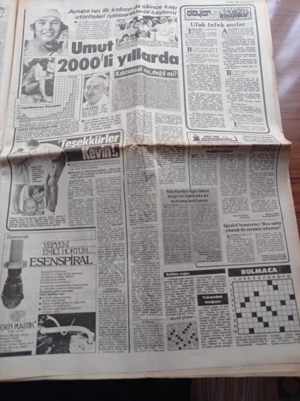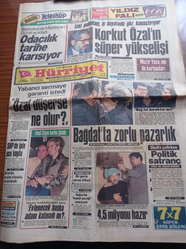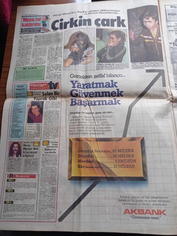 Hürriyet Gazetesi - 22 Mart 1986 - Merhum Nihat Erim'in Anıları 12 Mart Günleri Yazı Dizisi - Balyoz Operasyonu - Spor Toto Mahkemelik Oldu - Beşiktaş'ta Metin Tekin Sakatlandı - Odacılık Tarihe Karışıyor - Emel Sayın Korku İçinde - Korkut Özal'ın Süper Yükselişi - SHP'de İpin Ucu Koptu - Muzır Yasanın İlk Kurbanları - Turgut Özal Düşerse Ne Olur adlı eser, Kitap > Süreli Yayınlar > Gazeteler kategorisinde İkinci El olarak satıştadır.