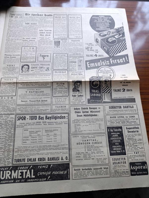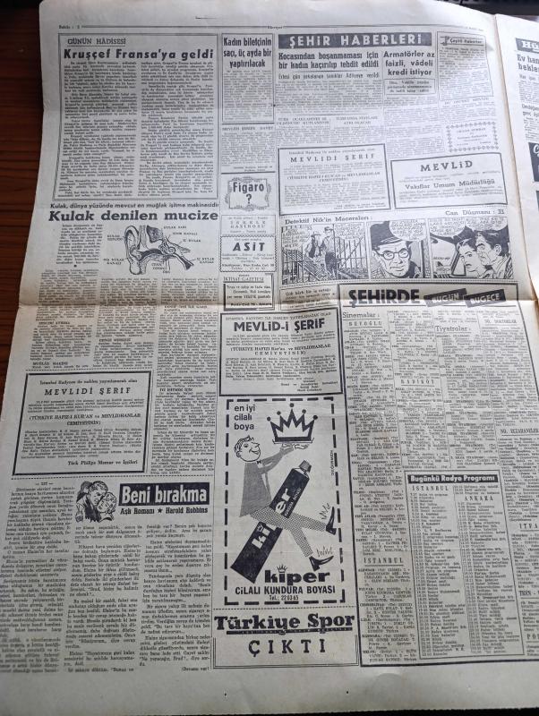 Hürriyet Gazetesi - 24 Mart 1960 - Boğaz Ağzında Dün Bir Şarap Tankeri Battı 13 Denizci Kayıp - Fas Bandıralı Gemiye Roket Atıldı Fakat Personel Kurtarılamadı - Çamur Yağışı Dün Sabaha Kadar Sürdü - Güney Afrika'da Siyahlar Dün İşbaşı Yapmadı - Rauf Denktaş Lefkoşa'dan Uçakla Ankara'ya Geldi - Saidi Nursi Öldü - İslahiyede Kalp Krizi Geçiren Saidi Nursi Urfa'da Bir Otelde Öldü - Kruşçef Paris'te 12 Bin Polis Birden Kızıl Lideri Koruyor - Beni Bırakma Aşk Romanı Yazan Harold Robbins Yazı Dizisi - Dedektif Nik'in Maceraları Çizgi Roman - Kalp Aldanmaz Aşk Ve Macera Romanı Çizen Faruk Geç - Amerikalıların Güneşe Gönderdiği Öncü V Dünya İle Sohbete Başladı - Allah Çocukları Unuttu Yazan Oya Baydar Yazı Dizisi - Adnan Şenses Fakir Şarkıcı Filminde - Türkiye Basketbol Şampiyonası Dün Başladı - Galatasaray Darüşşafaka Maçı Kavgalı Oldu - Feriköy Vefa'ya Dün Şans Tanımadı - Gündüz Kılıç Feriköy'den Ayrılıyor Mu - Fatoş Çizgi Roman - Güngörmüşler Çizgi Roman - Gökler Hakimi Gordon Çizgi Roman adlı eser, Kitap > Süreli Yayınlar > Gazeteler > Türkiye > Genel > Günlük kategorisinde İkinci El olarak satıştadır.