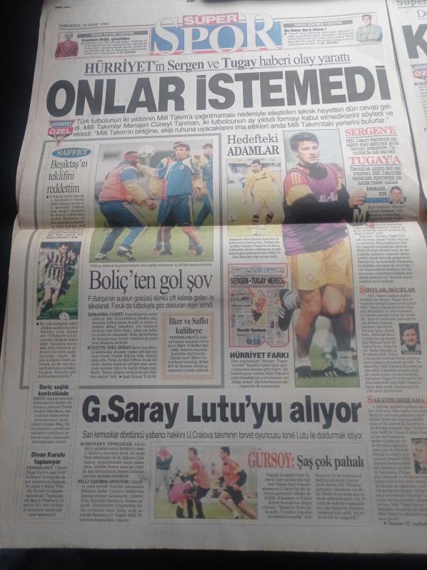 Hürriyet Gazetesi - 24 Ocak 1998 - Doping Yüzünden Teftişlik Olan Haltere Yeni Bir Bomba Düştü - Bill Clinton Oval Ofiste Harem Kurdu - Sezen Aksu - Fenerbahçeli Elvir Boliç Galatasaraylı Tugay Kerimoğlu Beşiktaşlı Alpay Özalan Reklam İçin Soyundu - Kore Savaşı Anma Günü - Serdar Bilgili Patladı - Barcelona'dan Oktay Derelioğlu'na Takip - NBA - Cibalispor'dan Büyük Atak - Ve Özer Çiller Yargıç Karşısında