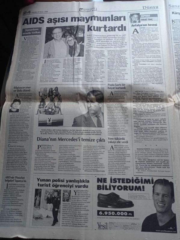 Hürriyet Gazetesi - 25 Ekim 1998 - Emin Çölaşan - Güneş Sistemi'nin Benzeri Tespit Edildi - İstanbul Büyükşehir Belediye Başkanı Recep Tayyip Erdoğan İstifam Yakın - Tekvando'da Avrupa Şampiyonu Mert Tuncer -Beşiktaş Fenerbahçe Derbisi - Süleyman Seba'nın İstifası Cebinde - Cumhuriyetimizin 75. Yıl Kutlamaları - Nesim Malki Cinayeti - Aşkın Nur Yengi - AIDS Aşısı Maymunları Kurtardı - Gazinolar Coştu - Hülya Avşar - Emel - Muazzez Abacı - Çevre Bakanı İmren Aykut - Alkolizmin Geni Bulundu adlı eser Türkçe dilindedir.