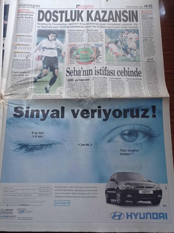 Hürriyet Gazetesi - 25 Ekim 1998 - Emin Çölaşan - Güneş Sistemi'nin Benzeri Tespit Edildi - İstanbul Büyükşehir Belediye Başkanı Recep Tayyip Erdoğan İstifam Yakın - Tekvando'da Avrupa Şampiyonu Mert Tuncer -Beşiktaş Fenerbahçe Derbisi - Süleyman Seba'nın İstifası Cebinde - Cumhuriyetimizin 75. Yıl Kutlamaları - Nesim Malki Cinayeti - Aşkın Nur Yengi - AIDS Aşısı Maymunları Kurtardı - Gazinolar Coştu - Hülya Avşar - Emel - Muazzez Abacı - Çevre Bakanı İmren Aykut - Alkolizmin Geni Bulundu adlı eser, Kitap > Süreli Yayınlar > Gazeteler kategorisinde İkinci El olarak satıştadır.