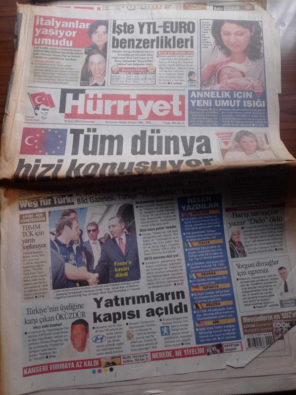 Hürriyet Gazetesi - 25 Eylül 2004 - Recep Tayyip Erdoğan Cuma Namazında Karşılaştığı Fenerbahçeli Futbolculara Gençlerbirliği Maçı İçin Başarılar Diledi - İşte YTL Euro Benzerlikleri - Irak'ta Rehin Alınan İtalyanlar - Barış Savaşçısı Yazar Dido Sotiriu Oldu- Jörg Haider Türkiye'nin Avrupa Birliği'ne Üyeliğine Karşı Çıkan Öküzdür - Tansa Mermerci Ekşioğlu'dan Takı Koleksiyonu - TBMM Başkanı Bülent Arınç - Şafak Sezer'in Babası Vefat Etti adlı eser Türkçe dilindedir.