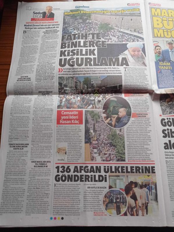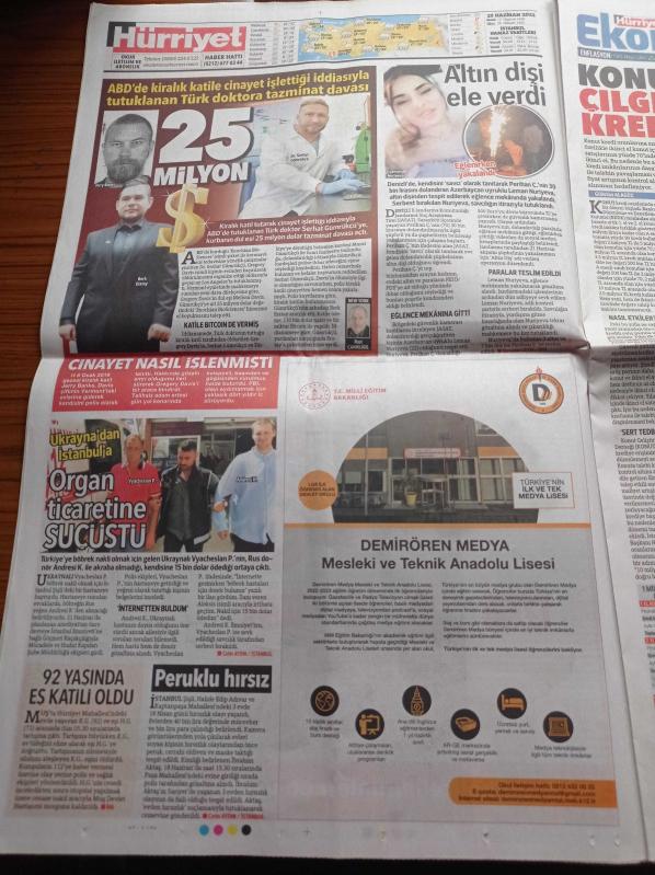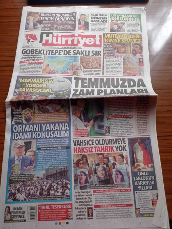 Hürriyet Gazetesi - 25 Haziran 2022 - Galatasaray'dan Fenerbahçe'ye Abdülkerim Bardakçı Çalımı - İsmailağa Cemaati Lideri Mahmut Ustaosmanoğlu Recep Tayyip Erdoğan'ın Da Katıldığı Törende Toprağa Verildi - Marmaris'te Orman Yangınları - Temmuzda Emeklilere Zam Planı - Vahşice Öldürülen Pınar Gültekin'i Öldürmeye Haksız Tahrik Yok - Osman Hamdi Bey'in Ünlü Tablosu Kaplumbağa Terbiyecisi adlı eser Türkçe dilindedir.
