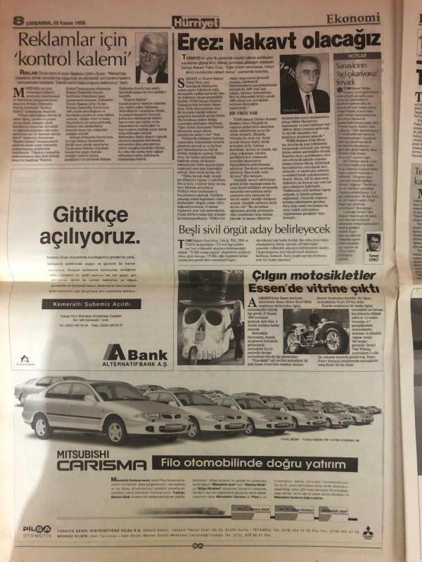 Hürriyet Gazetesi,25 Kasım 1998, Türkiye, , Yilmaz, Şili, İtalya, Eren, Lyon, Fabri, Tarkan, Almanya, Nez, Juventus, Galatasaray, Tepki, Rosenborg, Lens, Şampiyonlar Ligi, Arsenal, Benfica, Ajax, Beşiktaş, Ege, Mesut Yılmaz, Fenerbahçe, Trabzonspor, Tayfun, Esra, İsviçre, Liverpool, Fatih Terim, Brezilya, Hollanda, Yunanistan, Şenol Güneş, Ceza, Agu adlı eser, Kitap > Süreli Yayınlar kategorisinde İkinci El olarak satıştadır.