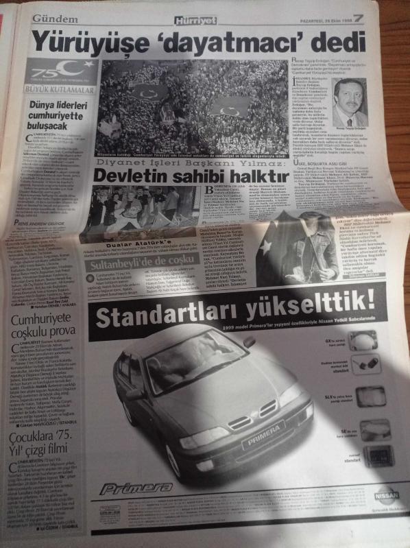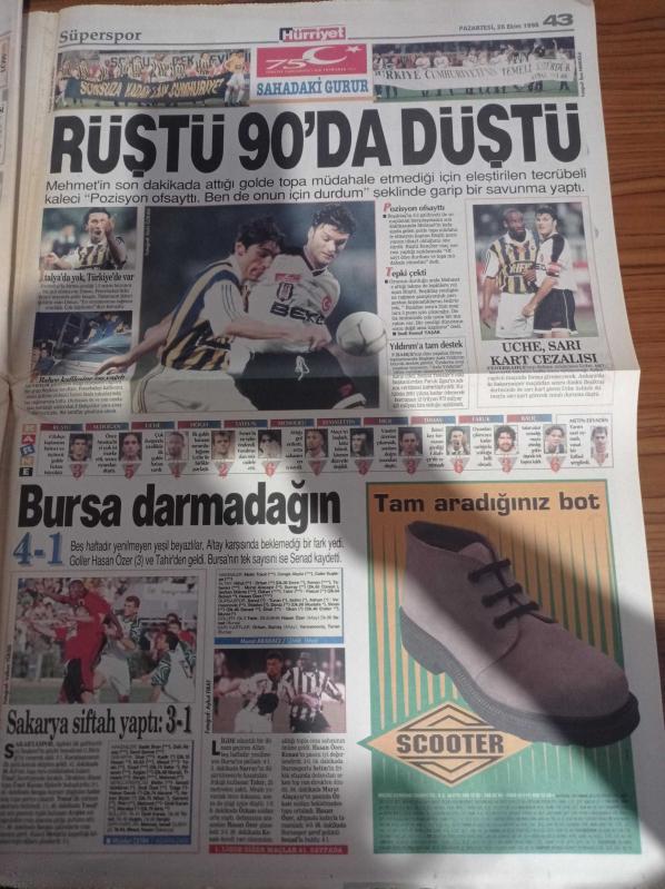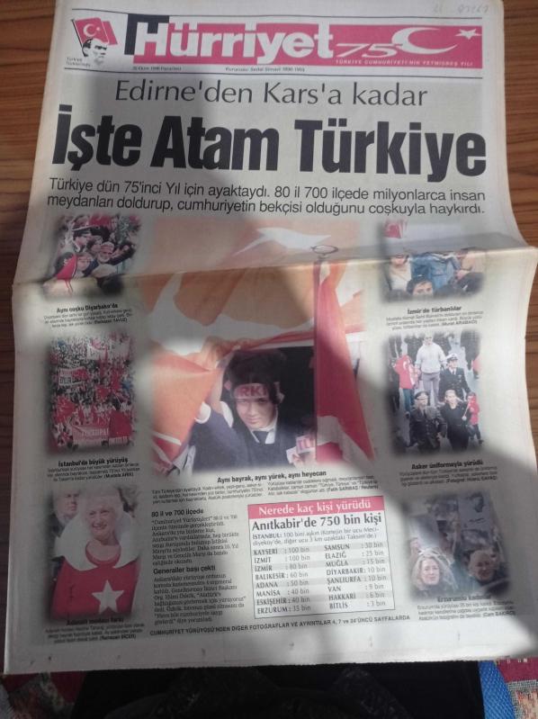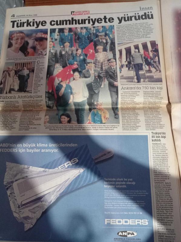 Hürriyet Gazetesi - 26 Ekim 1998 - Cumhuriyet Yürüyüşüne Ankara'da 750 Bin Kişi Katıldı - Beşiktaş Fenerbahçe'yi 90. Dakikada Attığı Golle Yendi - 2000. Gol Amokachi'den - Rüştü Reçber - Levent Kırca Bakan Işılay Saygın'ın 52 Yaşındayım Bakireyim Sözünü Mizah Yapan Levent Kırca Kanal Kapattırdı - Türkiye Dün 75. Yıl İçin Ayaktaydı - Harran'da Tarihi Konser - Ajda Pekkan - Türkbank İhalesi - Korkmaz Yiğit - Tansu Çiller adlı eser Türkçe dilindedir.