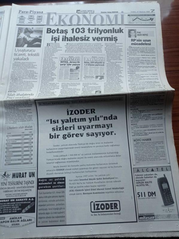 Hürriyet Gazetesi - 27 Haziran 1997 - 12 Dev Adam Avrupa Şampiyonası'nda Bosna Hersek'i Yendi - Sibel Can - Rahmi Koç - A Takımı Kabinesi- Kuzey Irak'taki Operasyonda Yunan Subayı Ele Geçti - Refahyol'da Erozyon Paniği - Tansu Çiller - Necmettin Erbakan - Telefon Dinlemeye Alman Modeli - Sendikalara Siyaset İzni Çıktı adlı eser Türkçe dilindedir.